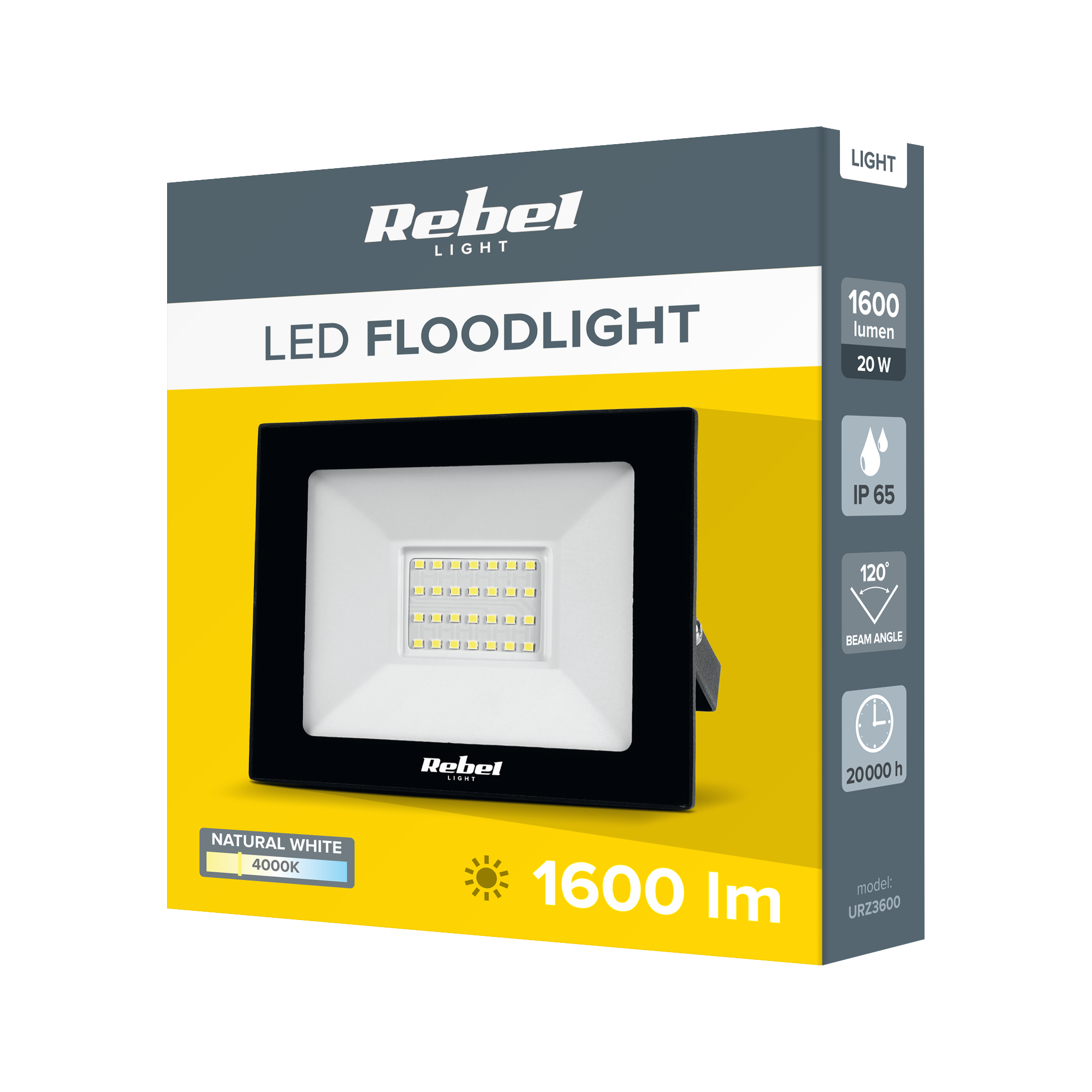 Reflektor LED Rebel o mocy 20W to doskonałe źródło światła dla różnorodnych zastosowań, zapewniające neutralne białe światło o temperaturze 4000K. Dzięki solidnej konstrukcji i wysokiej wydajności sprawdzi się zarówno w przestrzeniach zewnętrznych, jak i wewnętrznych.