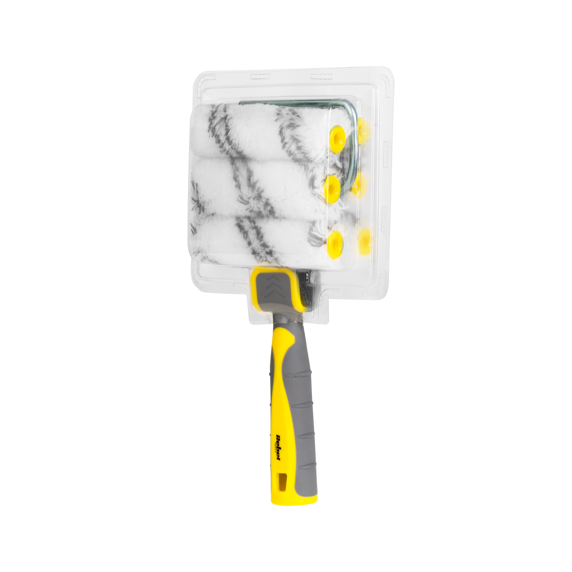 W zestawie znajduje się 6 wałków o szerokości 10 cm każdy, co zapewnia odpowiednią ilość narzędzi do pokrycia większych powierzchni. Długość całkowita wałków wynosi 25 cm, co umożliwia wygodne malowanie oraz dotarcie do trudno dostępnych miejsc.