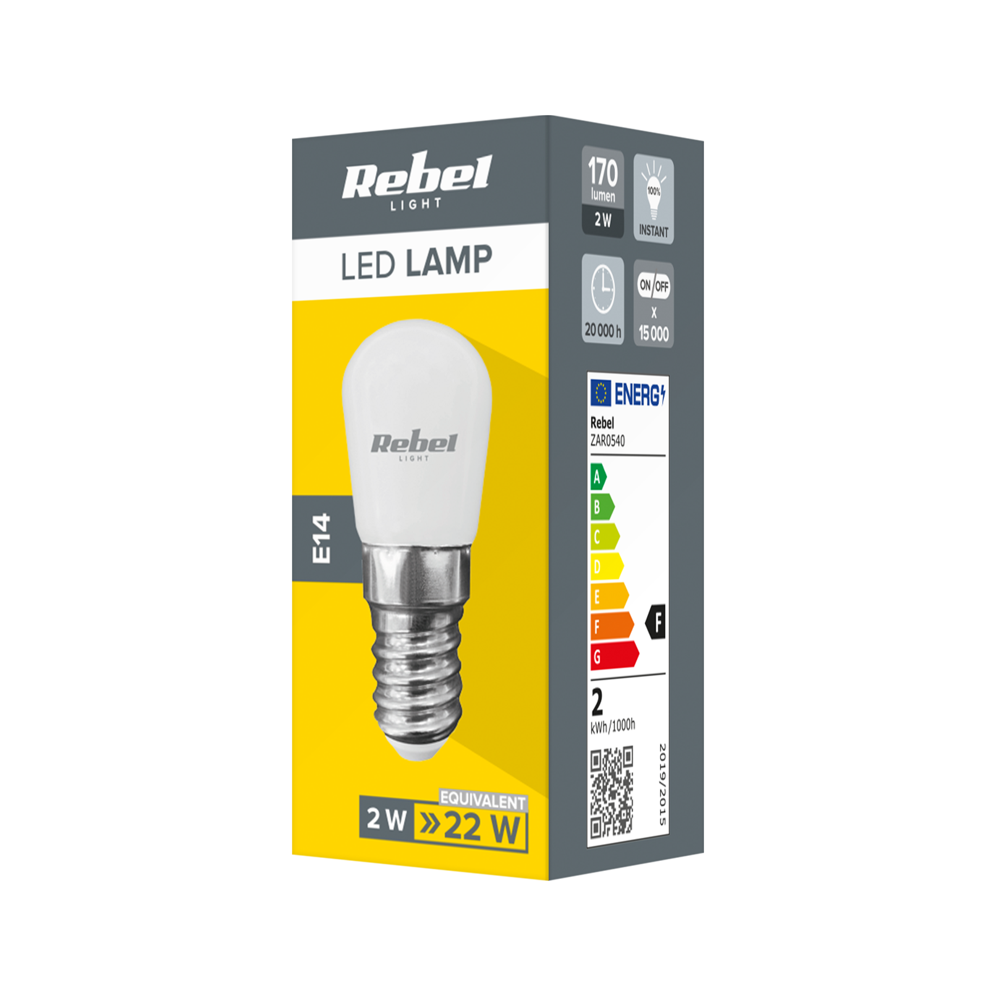 Lampa LED Rebel o mocy 2W z trzonkiem E14 to specjalistyczne źródło światła, zaprojektowane z myślą o zastosowaniu w lodówkach i okapach. Emituje naturalne białe światło o temperaturze 4000K, co zapewnia jasne i równomierne oświetlenie, idealne do chłodnych i zamkniętych przestrzeni.