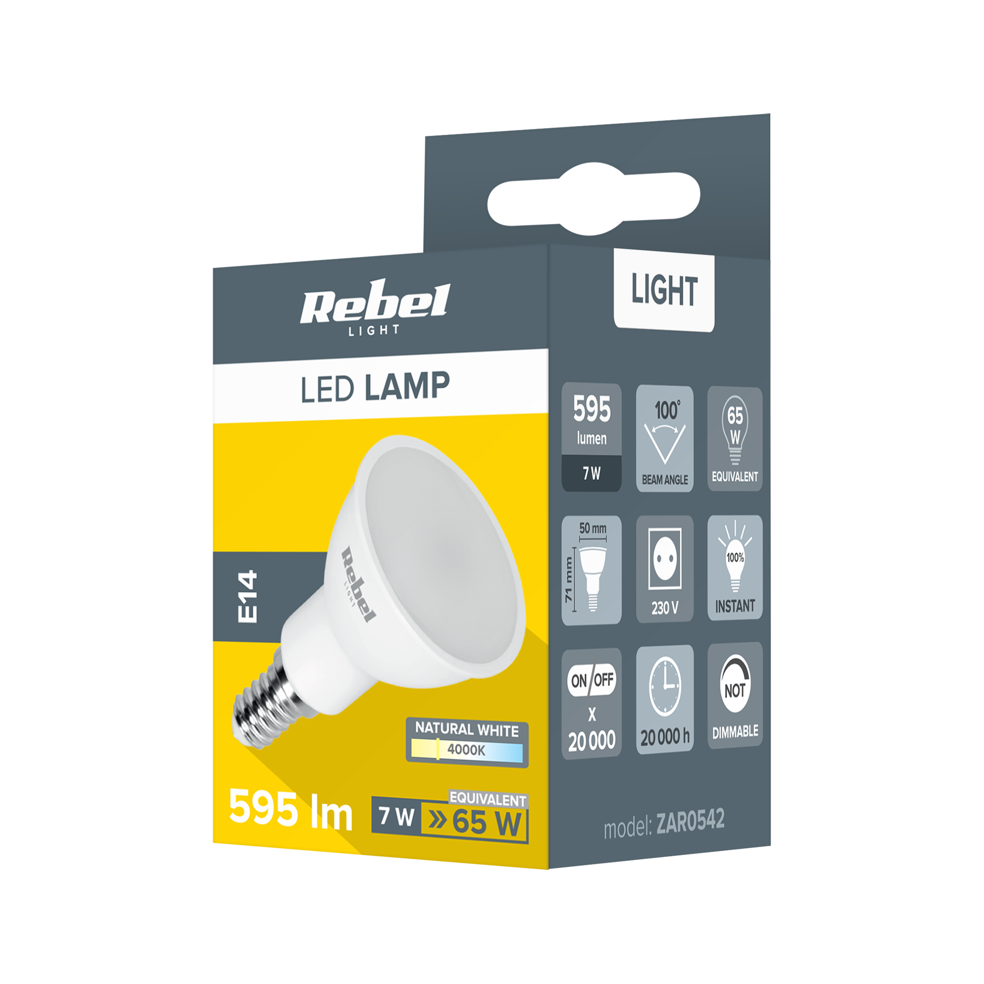Lampa LED Rebel 7W, E14, 4000K, 230V