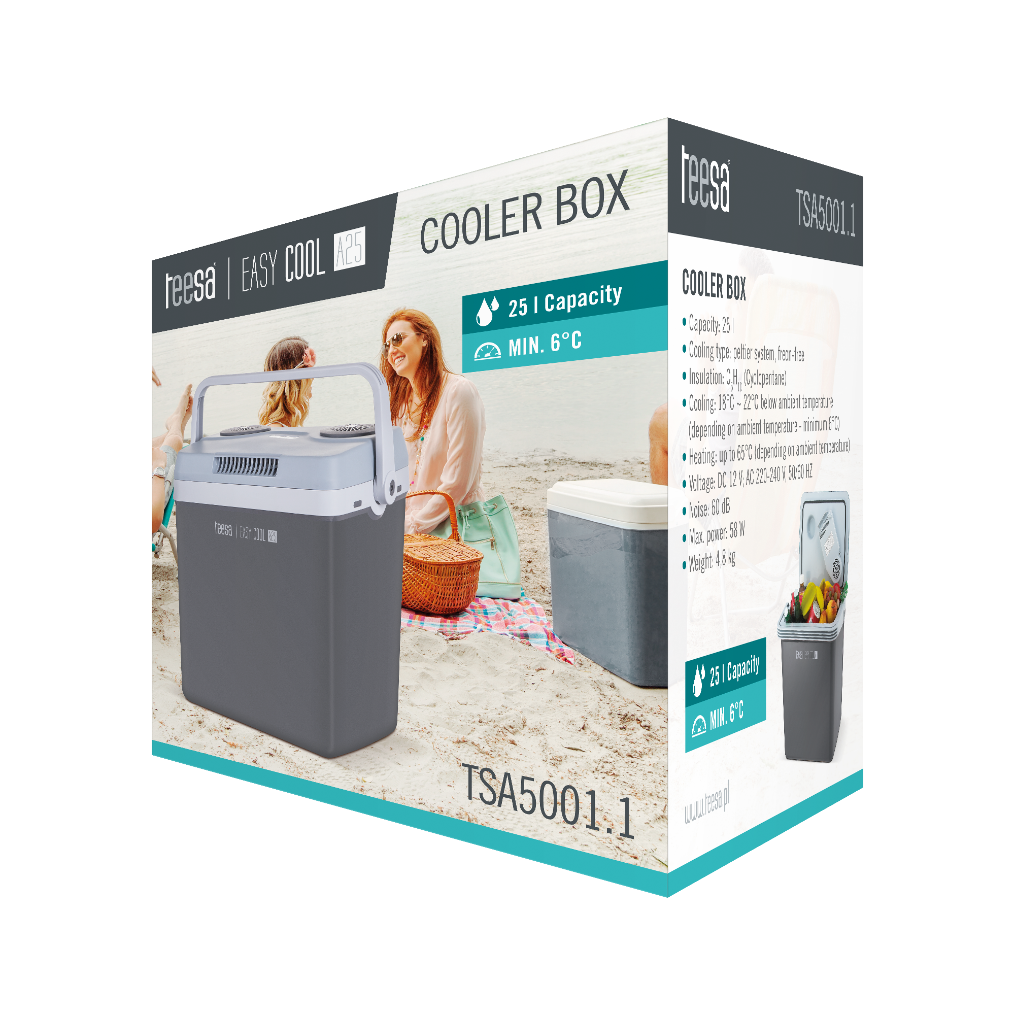Zastanawiasz się jaką lodówkę turystyczną kupić? Teesa EASY COOL A25 to produkt idealny zarówno na gorące letnie dni, jak też zimowe wypady. Pozwala ona, w zależności od warunków zewnętrznych, schłodzić żywność nawet do 6°C lub podgrzać ją do +65°C. Jest to zatem idealne urządzenie do chłodzenia żywności w czasie letniego pikniku, jak też przechowywania gorących napojów w czasie zimowych szaleństw.