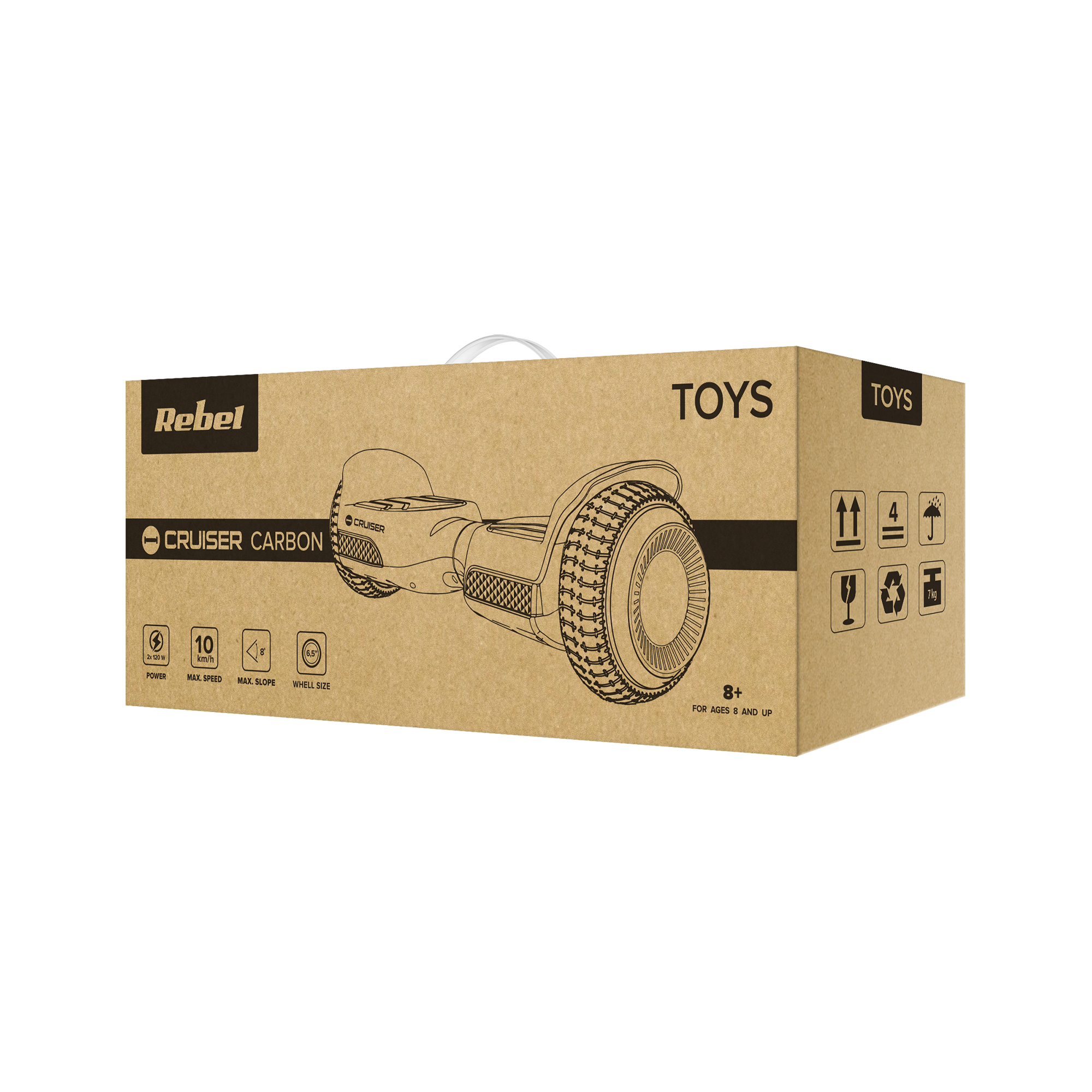 Elektryczna deska Cruiser Carbon została wyposażona w duże 6,5” koła, każde napędzane silnikiem o mocy 120 W. Umożliwia to rozpędzenie się nawet do 10 km/h oraz, co bardziej istotne, wjechanie na wzniesienia o maksymalnym kącie nachylenia do 8°.