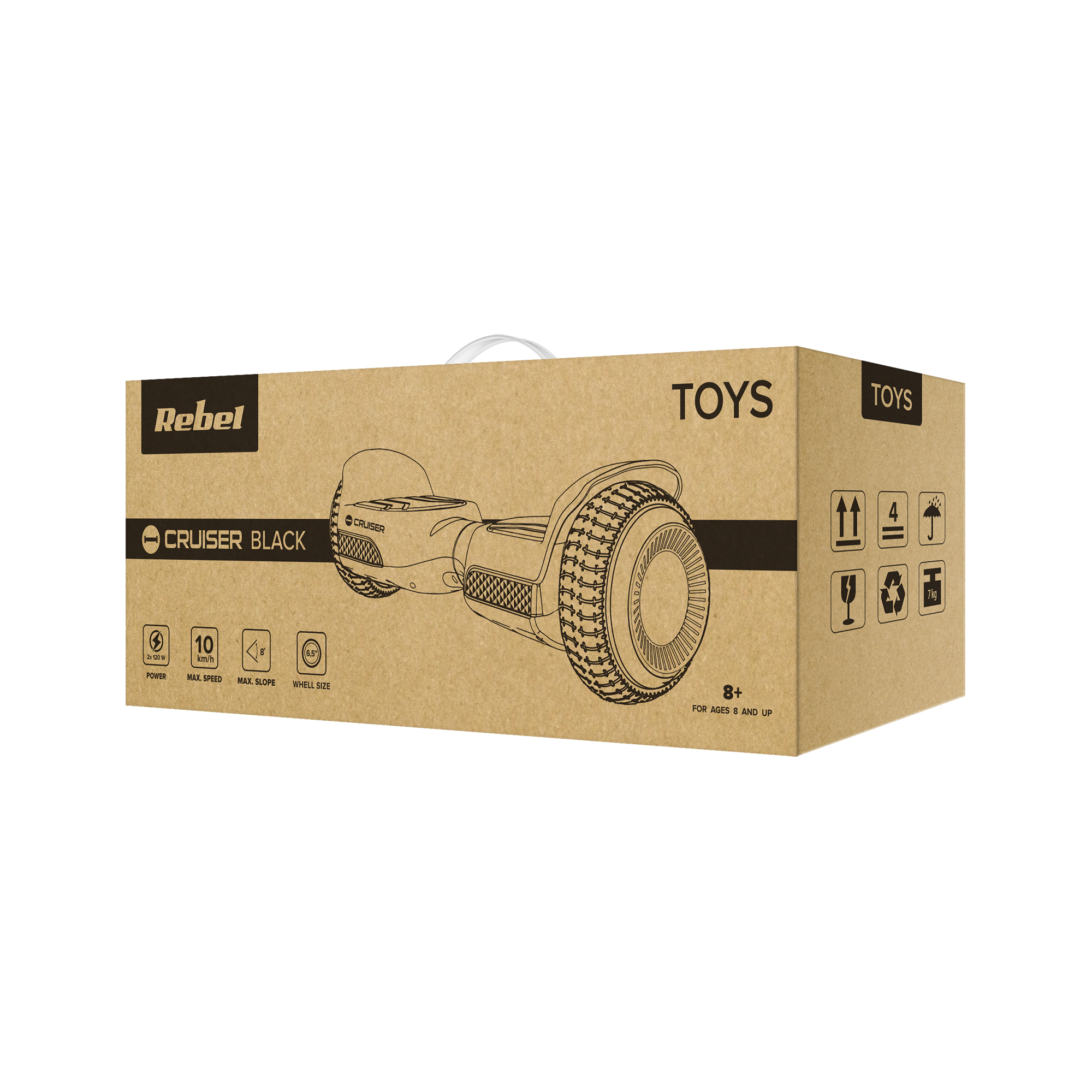 Elektryczna deska Cruiser Black została wyposażona w duże 6,5” koła, każde napędzane silnikiem o mocy 120 W. Umożliwia to rozpędzenie się nawet do 10 km/h oraz, co bardziej istotne, wjechanie na wzniesienia o maksymalnym kącie nachylenia do 8°.