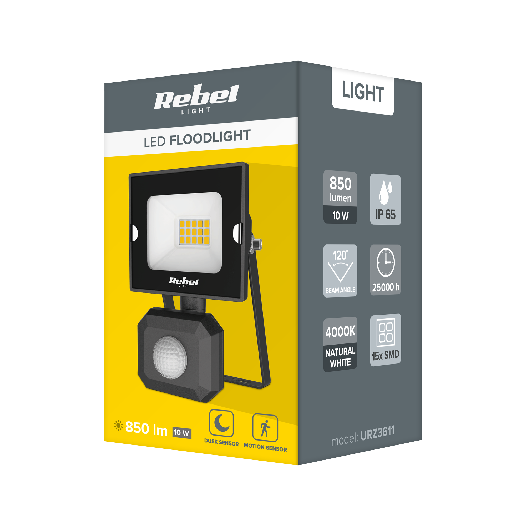 Reflektor LED 10W z sensorem ruchu i zmierzchu, 4000K, 230V