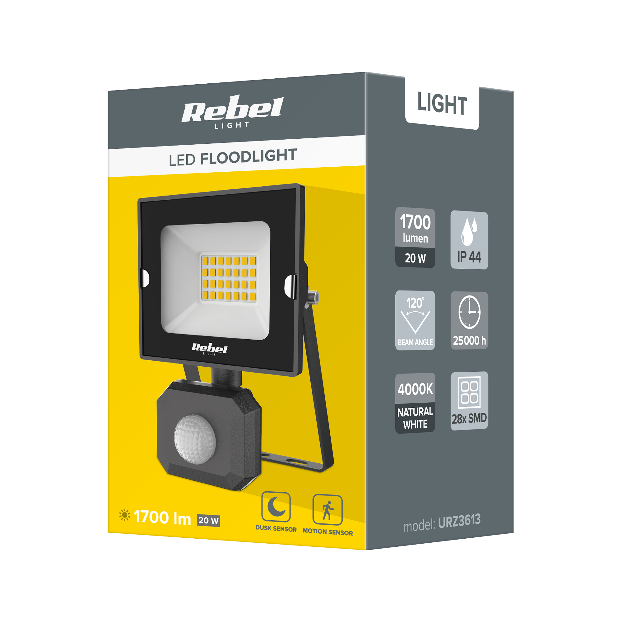 Reflektor LED o mocy 20 W to zaawansowane rozwiązanie oświetleniowe, które łączy wysoką wydajność świetlną z funkcjonalnością sensora ruchu i zmierzchu. Jest to idealne rozwiązanie do oświetlania przestrzeni zewnętrznych, takich jak podwórka, parkingi czy wejścia do budynków.