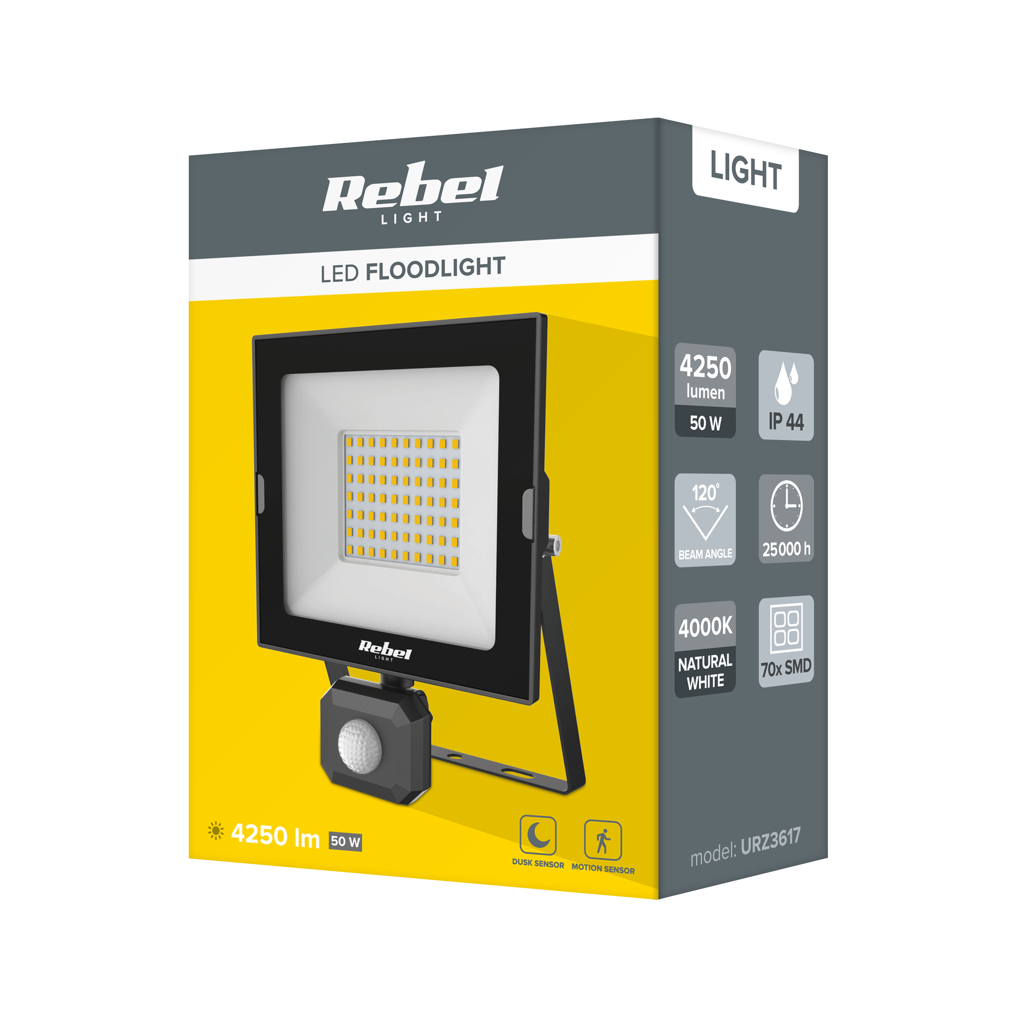 Halogen reflektor LED lampa 50W czujnik ruchu zmierzchu IP44 Rebel