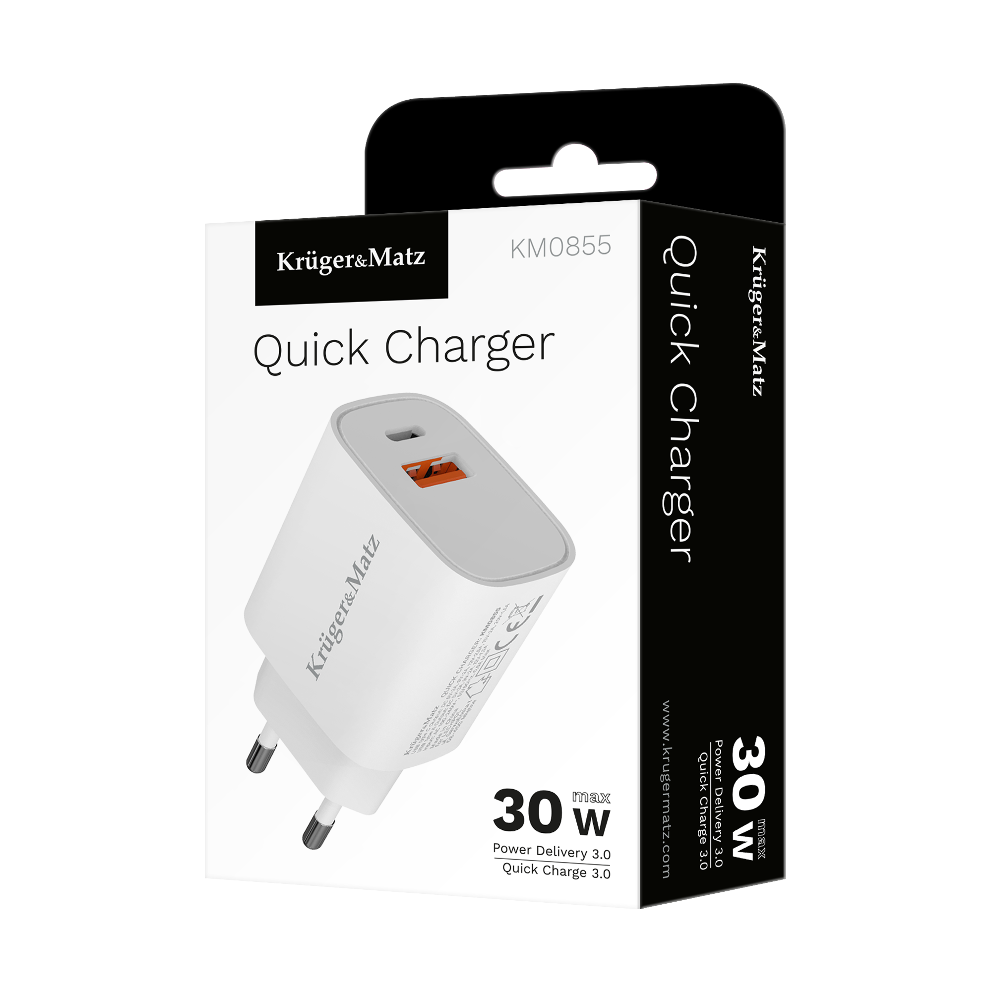 Jeśli zastanawiasz się jaka ładowarka sieciowa USB naładuje Twój smartfon, to z pewnością będzie to model KM0855. Urządzenie pracuje z maksymalną mocą 30 W i zostało wyposażone w funkcję szybkiego ładowania Power Delivery 3.0 oraz Quick Charge 3.0, które poprawiają wydajność ładowania.