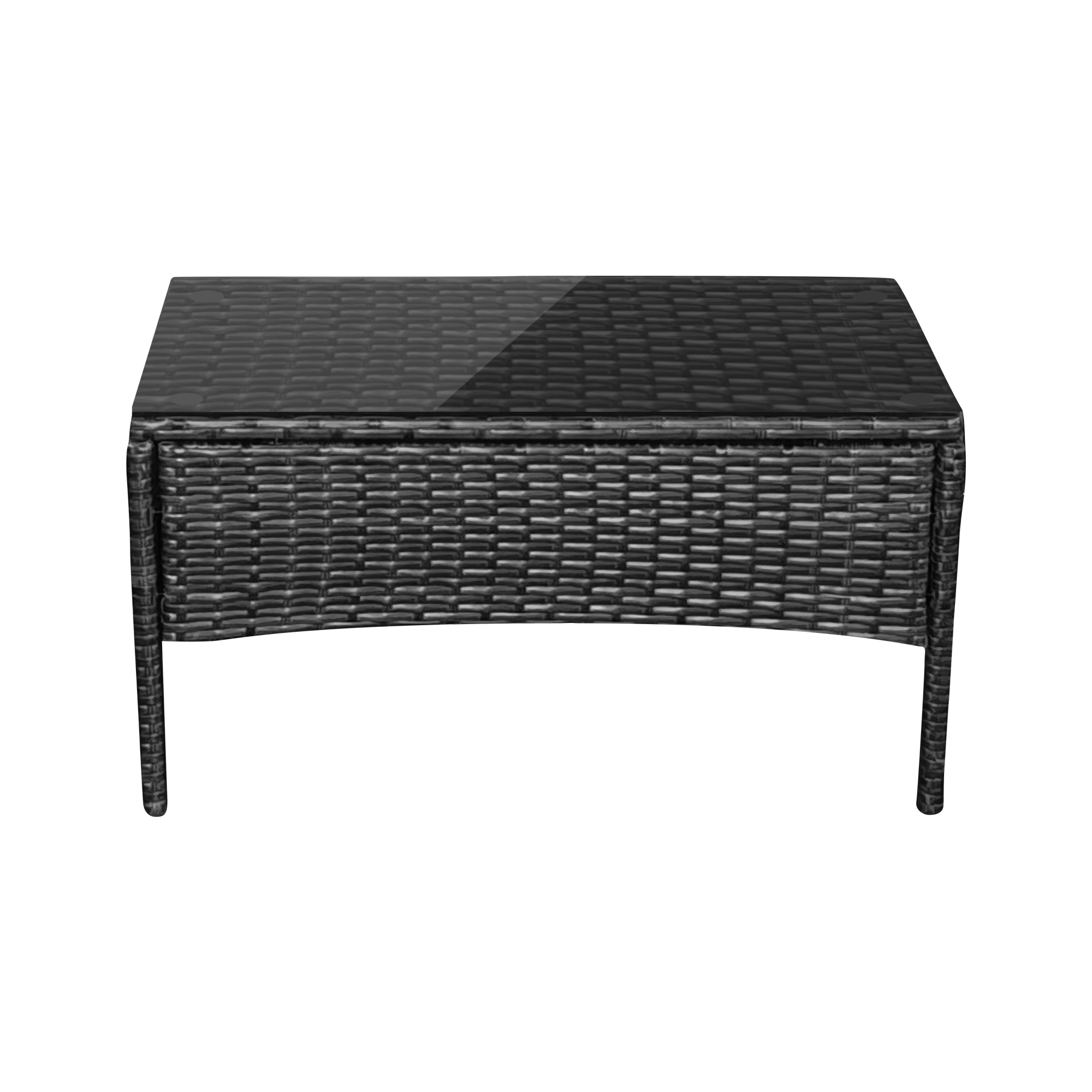 Zestaw mebli ogrodowych dopełnia stolik z technorattanu. Posiada on solidną konstrukcję i wystarczająco dużą powierzchnię, aby pomieścić napoje, przekąski czy dekoracje. Możesz swobodnie korzystać z niego podczas kawy z przyjaciółką, czy rodzinnego podwieczorku.