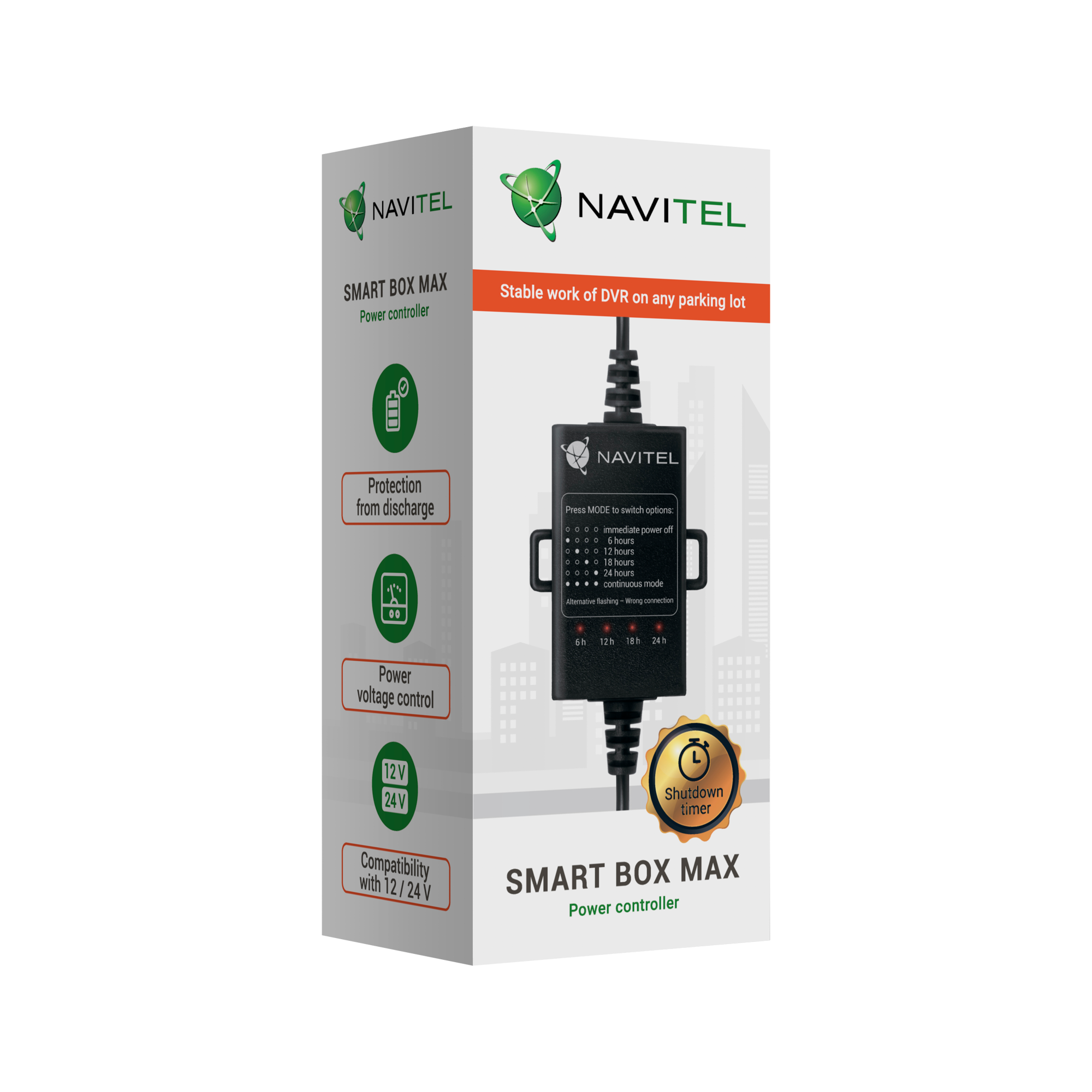 NAVITEL SMART BOX MAX chroni akumulator pojazdu przed całkowitym rozładowaniem, kontrolując jego pozostały czas pracy i napięcie. Adapter automatycznie wyłączy zasilanie rejestratora, gdy napięcie akumulatora spadnie do określonej wartości lub upłynie czas ustawiony przez użytkownika (w zależności od tego, co nastąpi wcześniej). Ponadto NAVITEL SMART BOX MAX chroni twój DVR przed skokami napięcia.