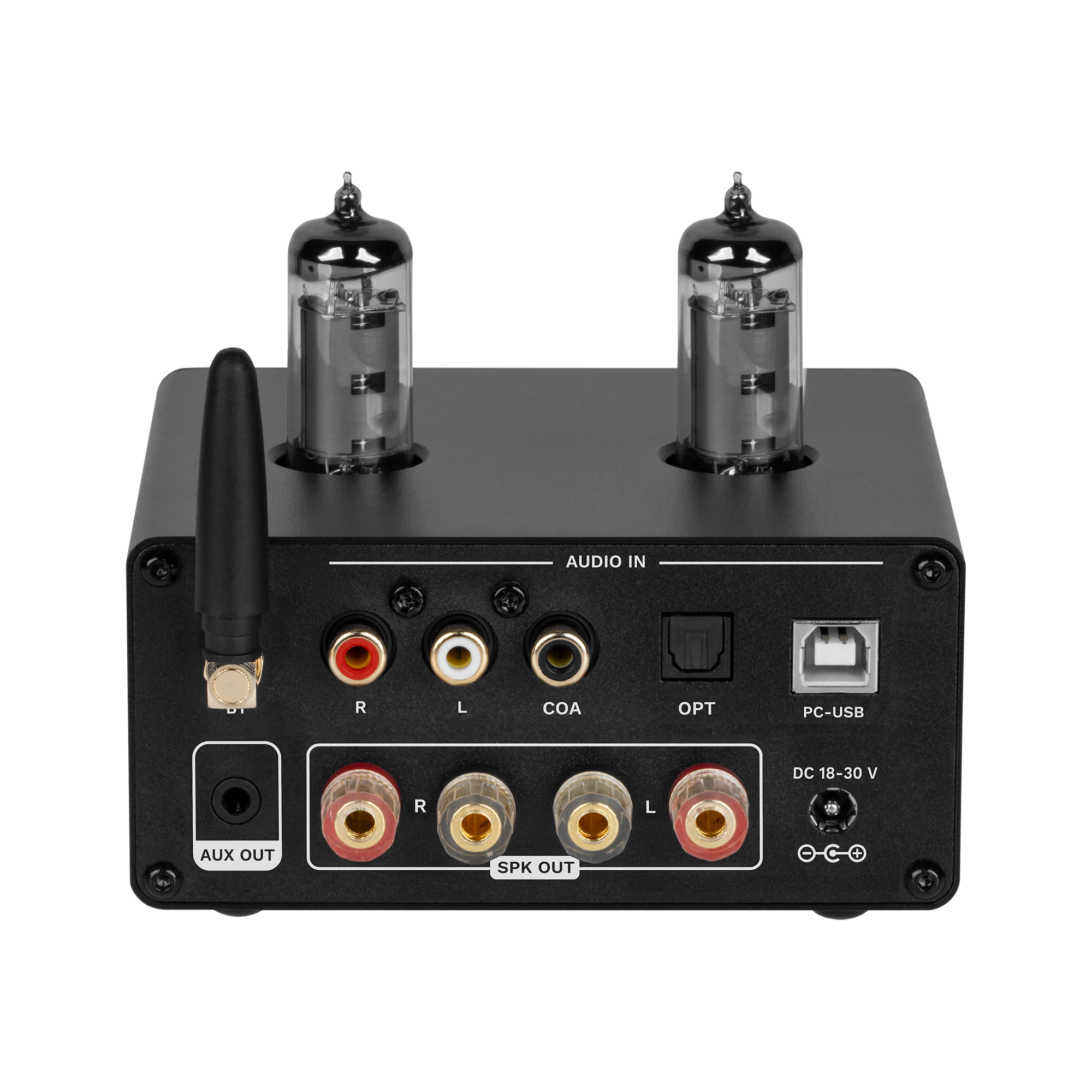 Kruger&Matz A60 daje Ci szeroki wachlarz możliwości. Urządzenie zostało wyposażony w wejście RCA, coaxial i optyczne, a także port USB-B. Liczne gniazda, które znajdziesz na tylny panelu pomogą Ci stworzyć Twój własny zaawansowany system audio.