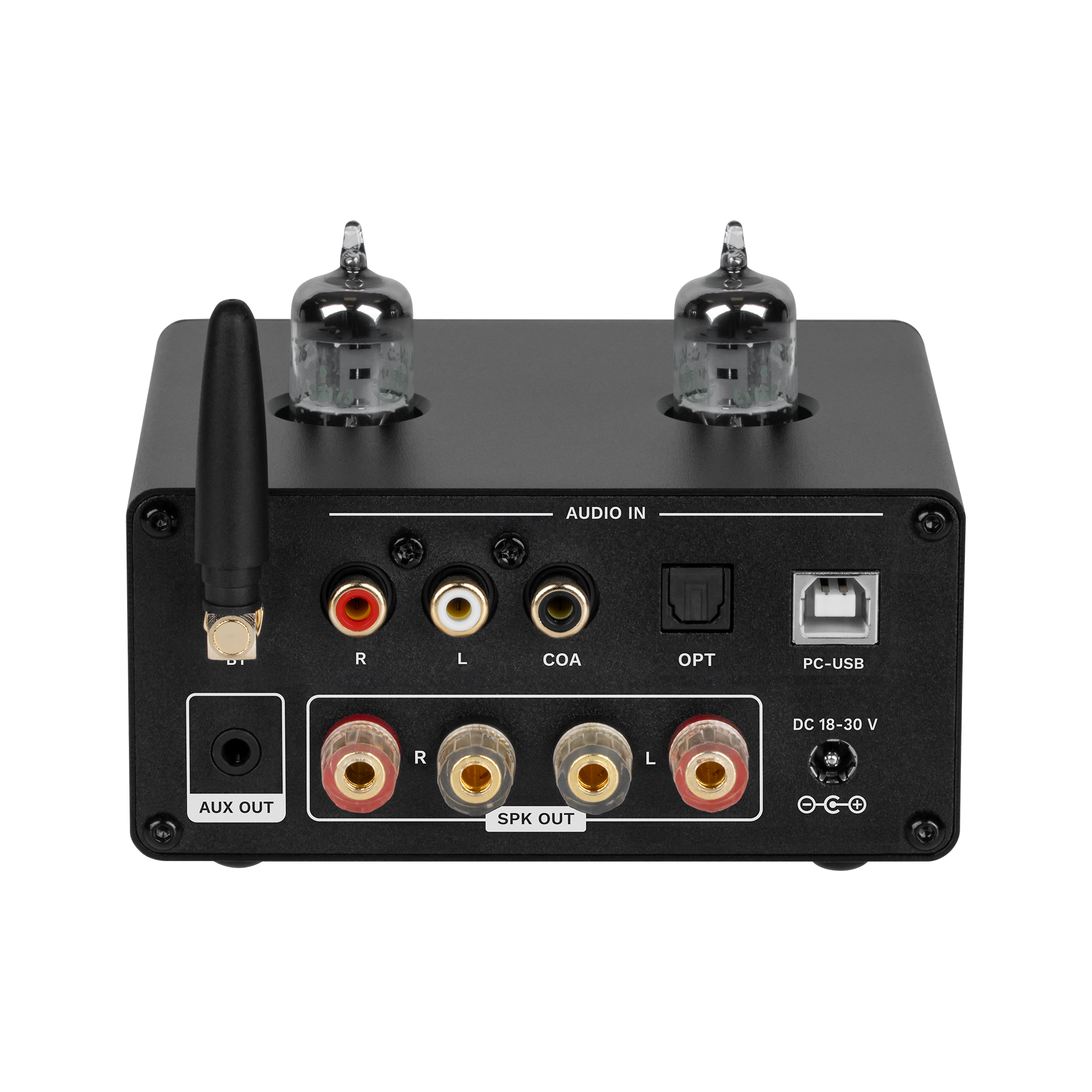 Kruger&Matz A80-PRO daje Ci szeroki wachlarz możliwości. Urządzenie zostało wyposażony w wejście RCA, coaxial i optyczne, a także port USB-B. Liczne gniazda, które znajdziesz na tylnym panelu pomogą Ci stworzyć Twój własny zaawansowany system audio.