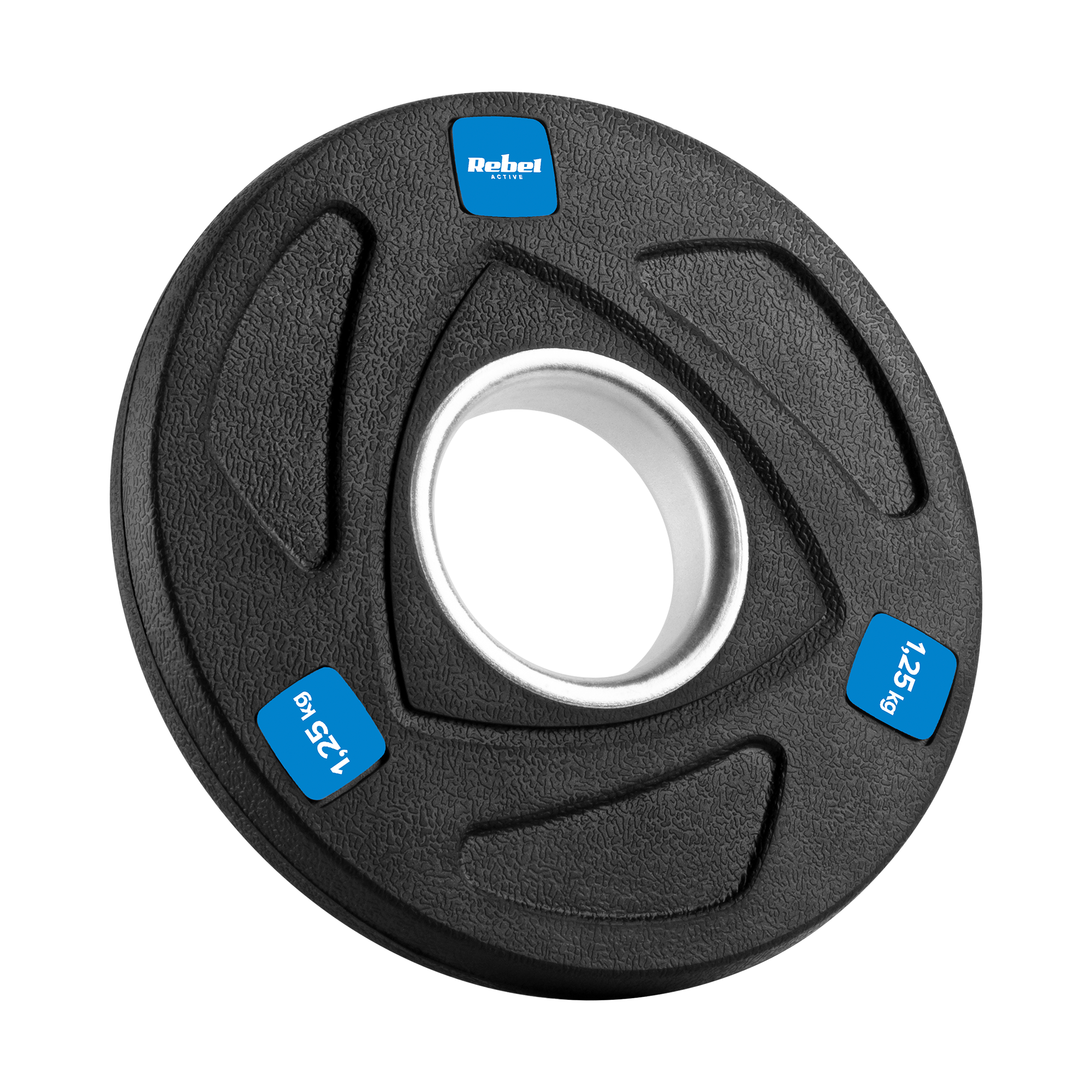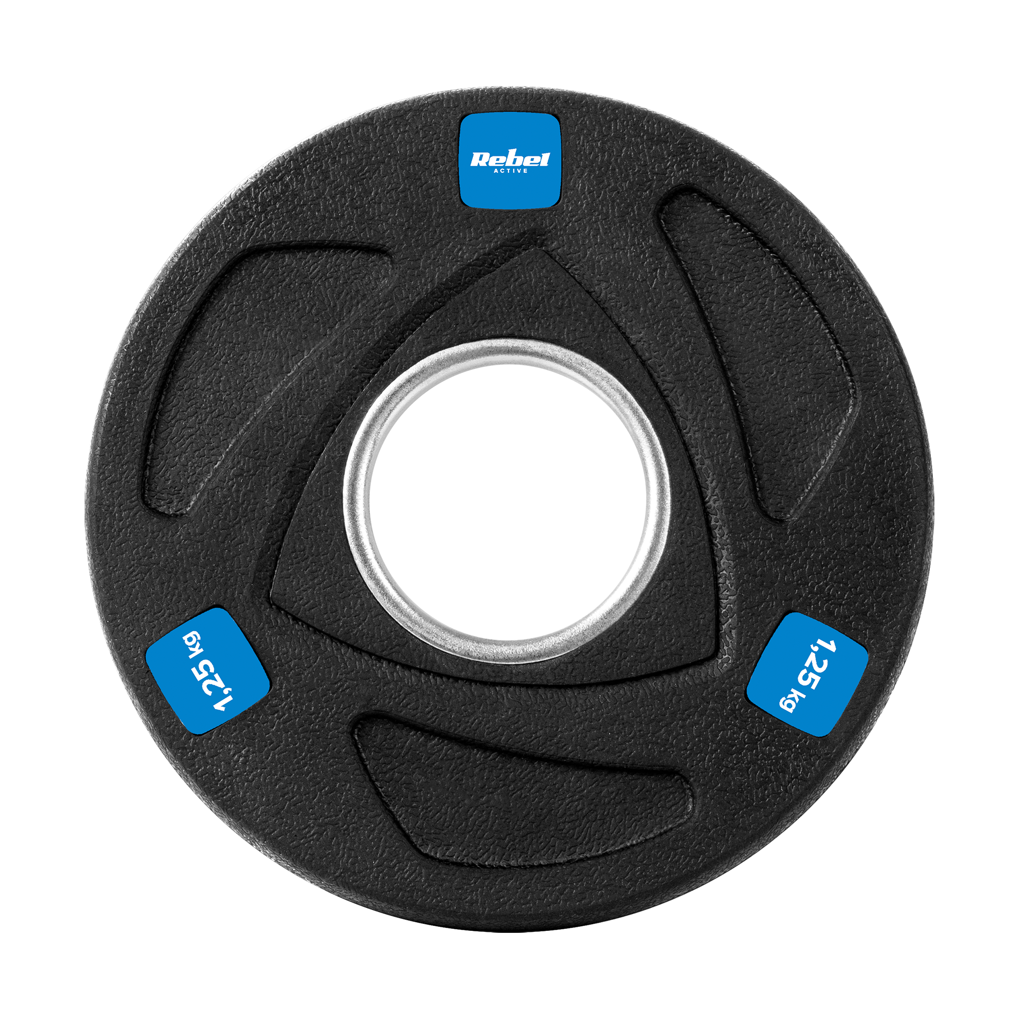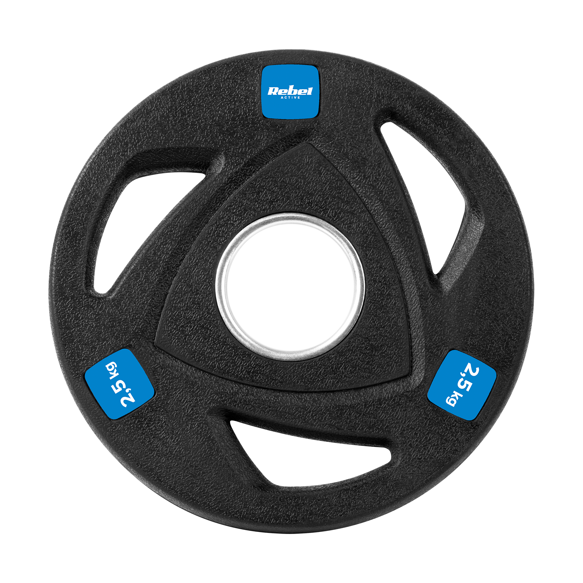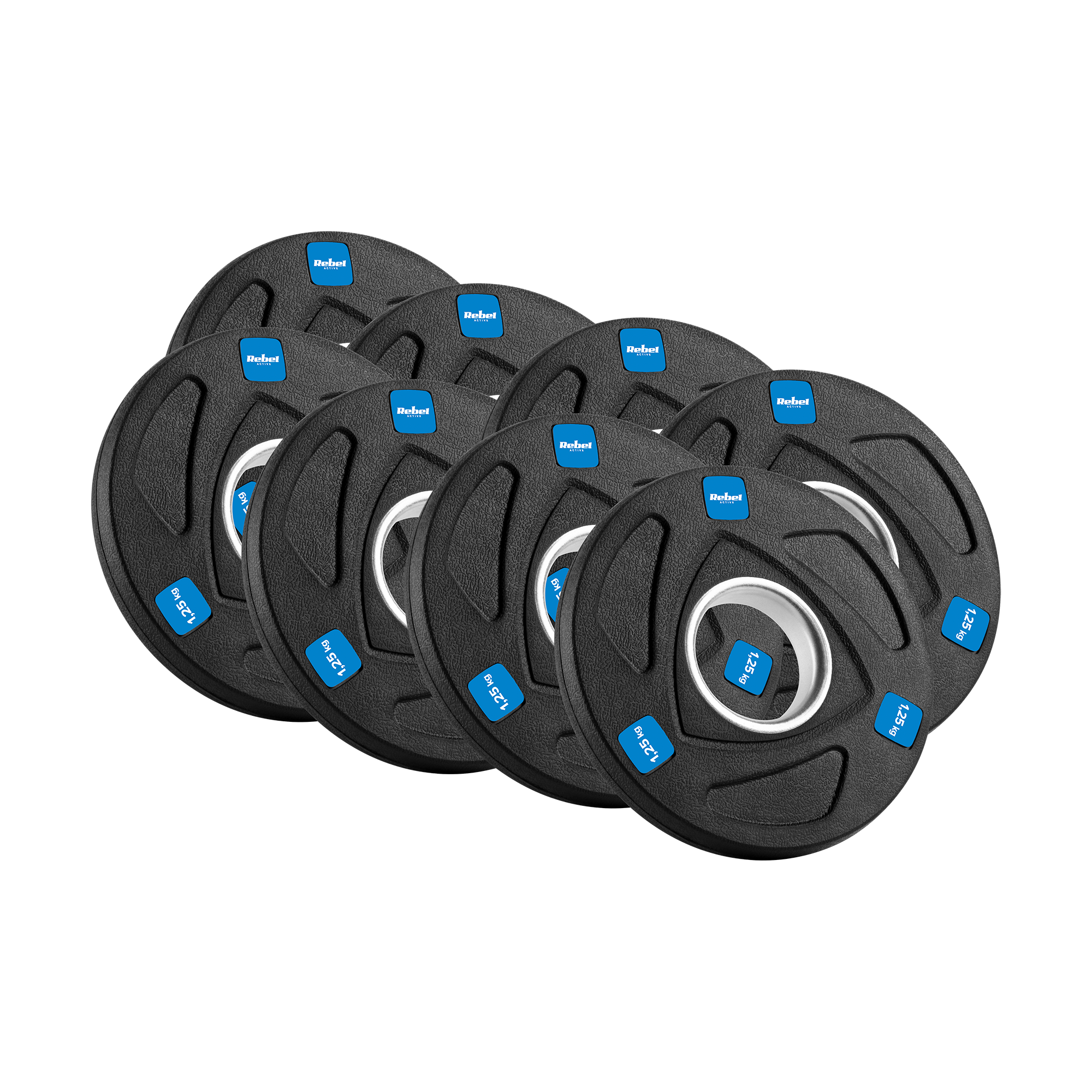 Zestaw Rebel Active pozwala trenować wznosy i przysiady przy pomocy samych ciężarków. Możesz też założyć obciążenia na gryf. Talerze mają większe otwory niż tradycyjne obciążenia, co pozwala na używanie ich z większością sztang olimpijskich. Otwór talerzy w zestawie RBA-2113 dopasowany jest do standardu gryfów olimpijskich i wynosi 51 mm.