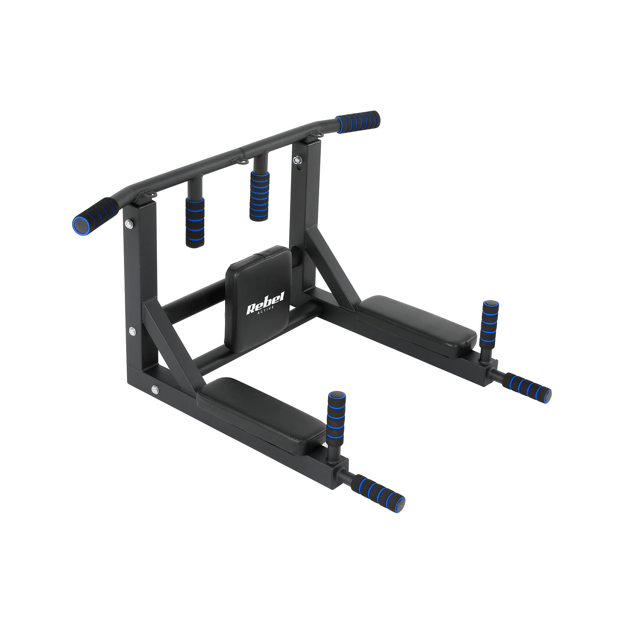 Drążek RB-2401 Rebel Active oferuje różne możliwości montażu, dzięki czemu może pełnić funkcję zarówno drążka do podciągania, jak i poręczy do ćwiczeń. Funkcja drążka umożliwia wykonywanie podciągań w różnych wariantach chwytu (nachwyt, podchwyt, chwyt neutralny), z kolei montaż jako poręcz umożliwia wykonywanie dipów i ćwiczeń na triceps.