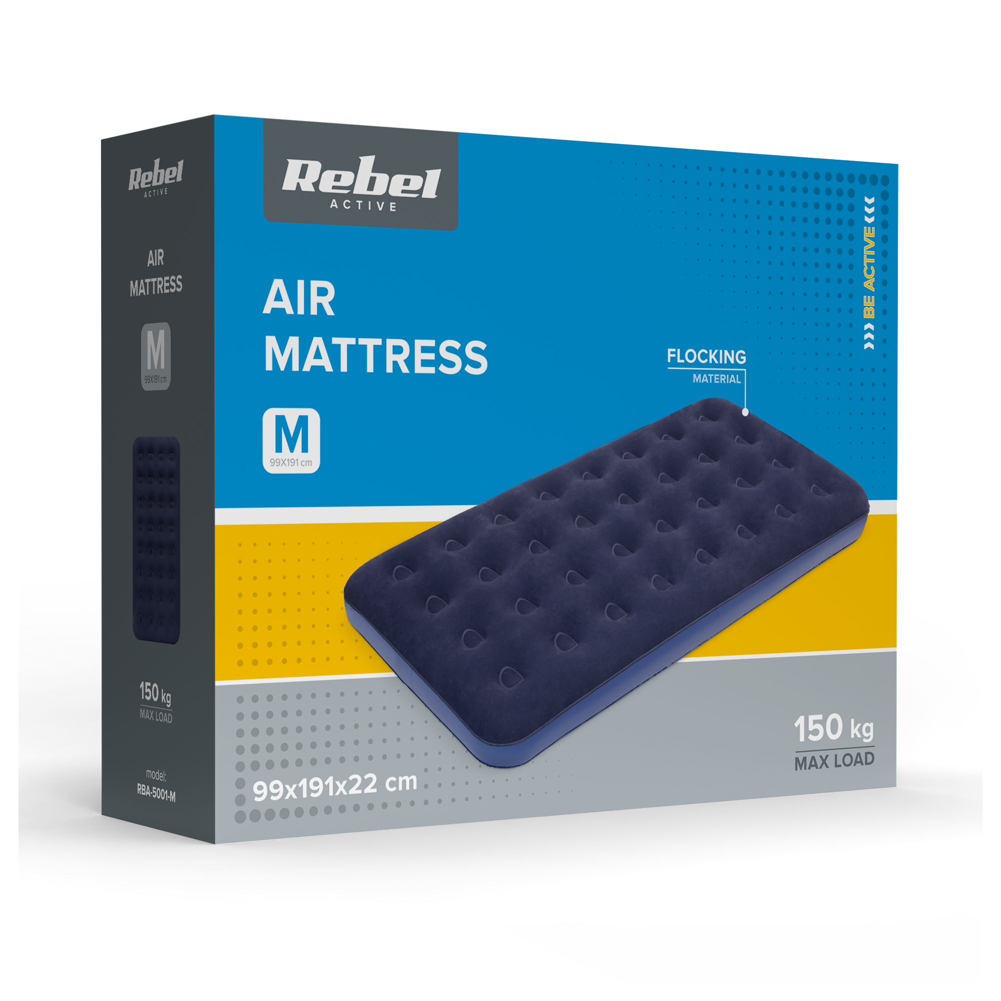 Materac wyposażony jest w zawór szybkiego napełniania, co pozwala na błyskawiczne pompowanie i opróżnianie, oszczędzając Twój czas i energię. Idealny zarówno do użytku wewnątrz, jak i na zewnątrz, ten materac dmuchany zapewnia wygodny i stabilny sen w każdych warunkach. Do szybkiego napełnianie materaca powietrzem rekomendujemy pompkę z serii Rebel Active, model RBA-5004. Wystarczy, że ją dokupisz, a Twój materac będzie napompowany w kilka minut.