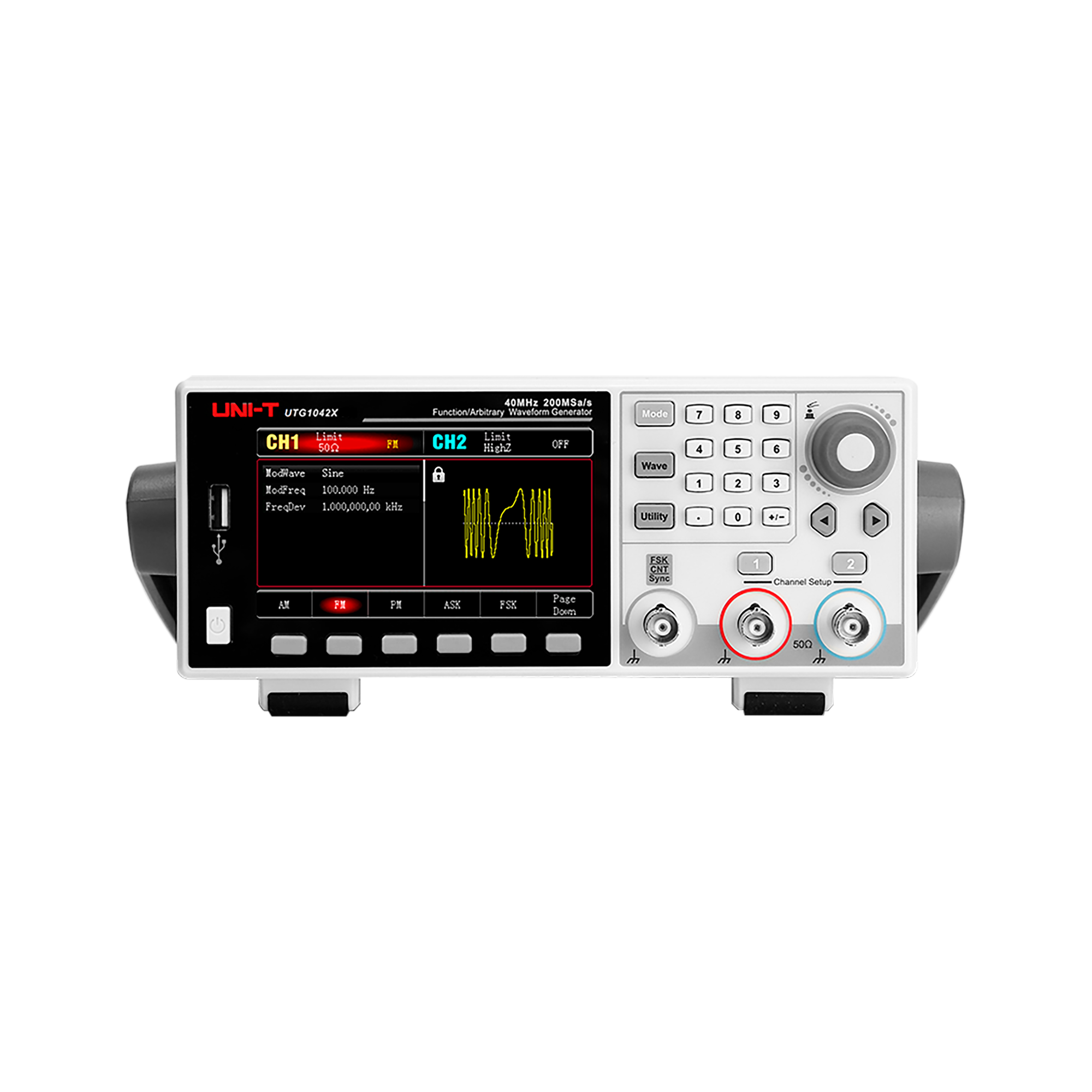 Generator oferuje różne tryby pracy, takie jak wyjście aktywne/nieaktywne, ciągły, modulowany, przemiatanie oraz burst. UTG1022X obsługuje również różnorodne rodzaje modulacji, w tym AM, FM, PM, ASK, FSK, PSK oraz PWM, co umożliwia zaawansowane testy i eksperymenty z sygnałami modulowanymi.