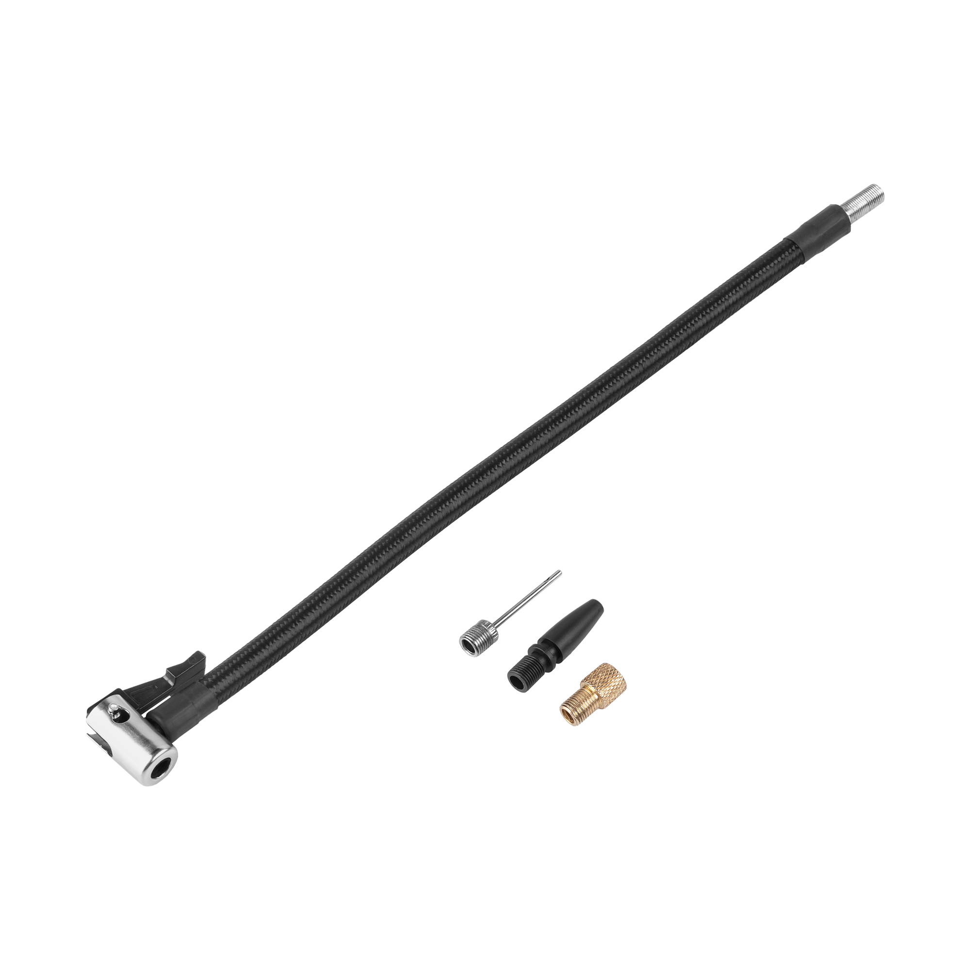 W zestawie: adapter presta do wentyla rowerowego, igła do piłek sportowych, uniwersalny adapter