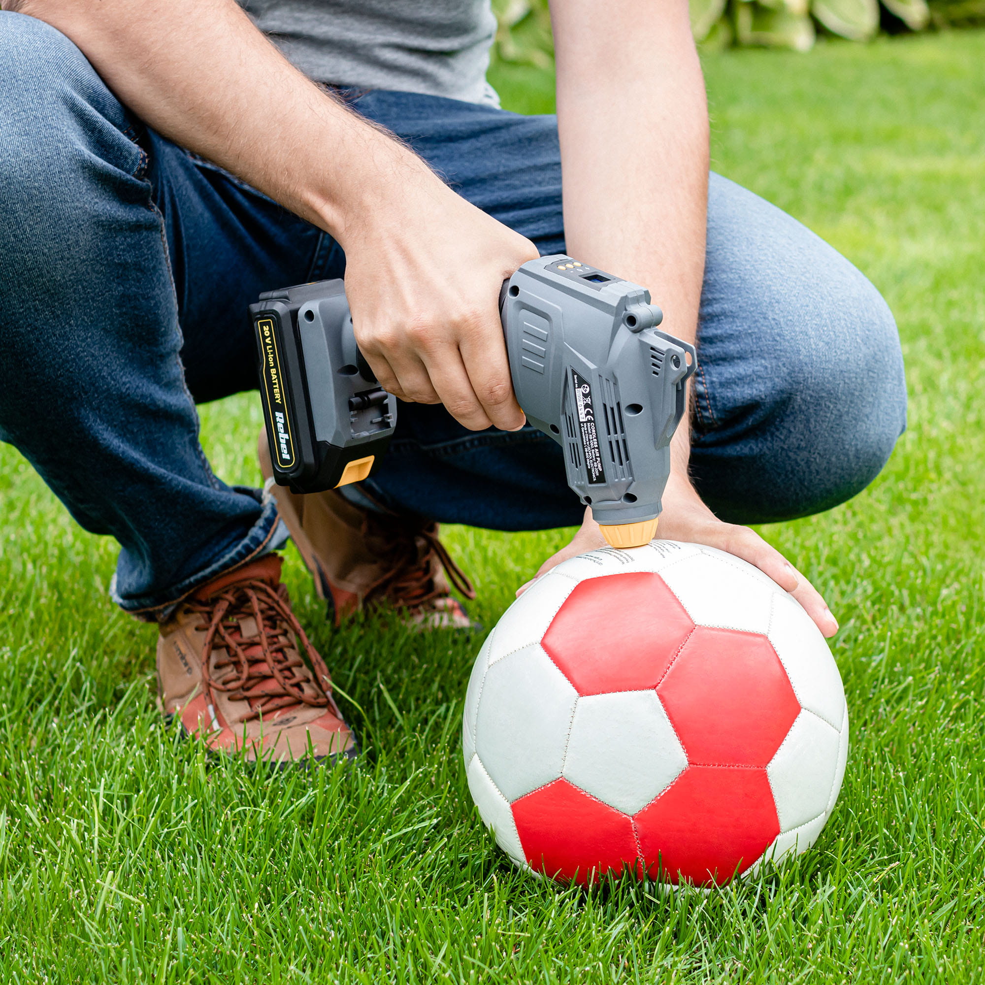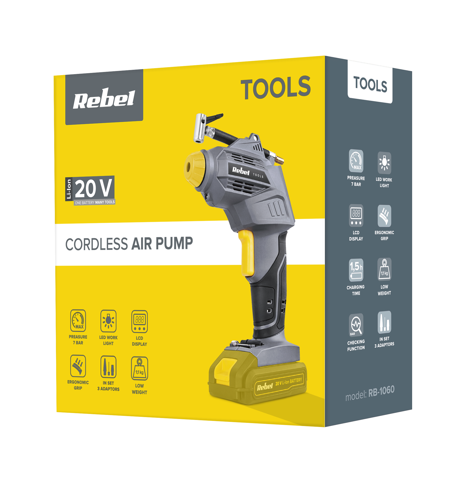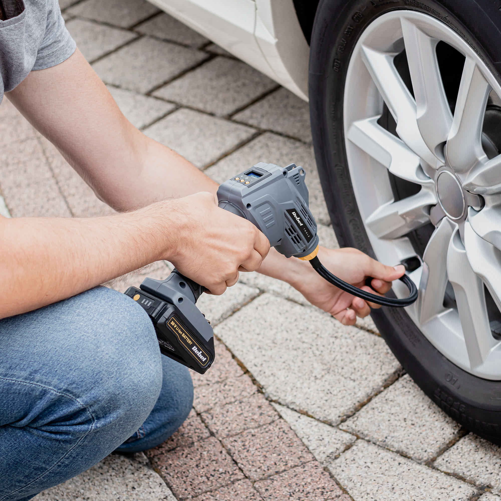 Zapomnij o ręcznej pompce i już dziś zastąp ją akumulatorowym kompresorem z serii Rebel Tools. Dzięki dołączonym do zestawu akcesoriom urządzenie pozwoli Ci szybko i bez wysiłku napompować koła rowerowe oraz samochodowe, a także zabawki i inne przedmioty dmuchane, typu materace, piłki i baseny dla dzieci.