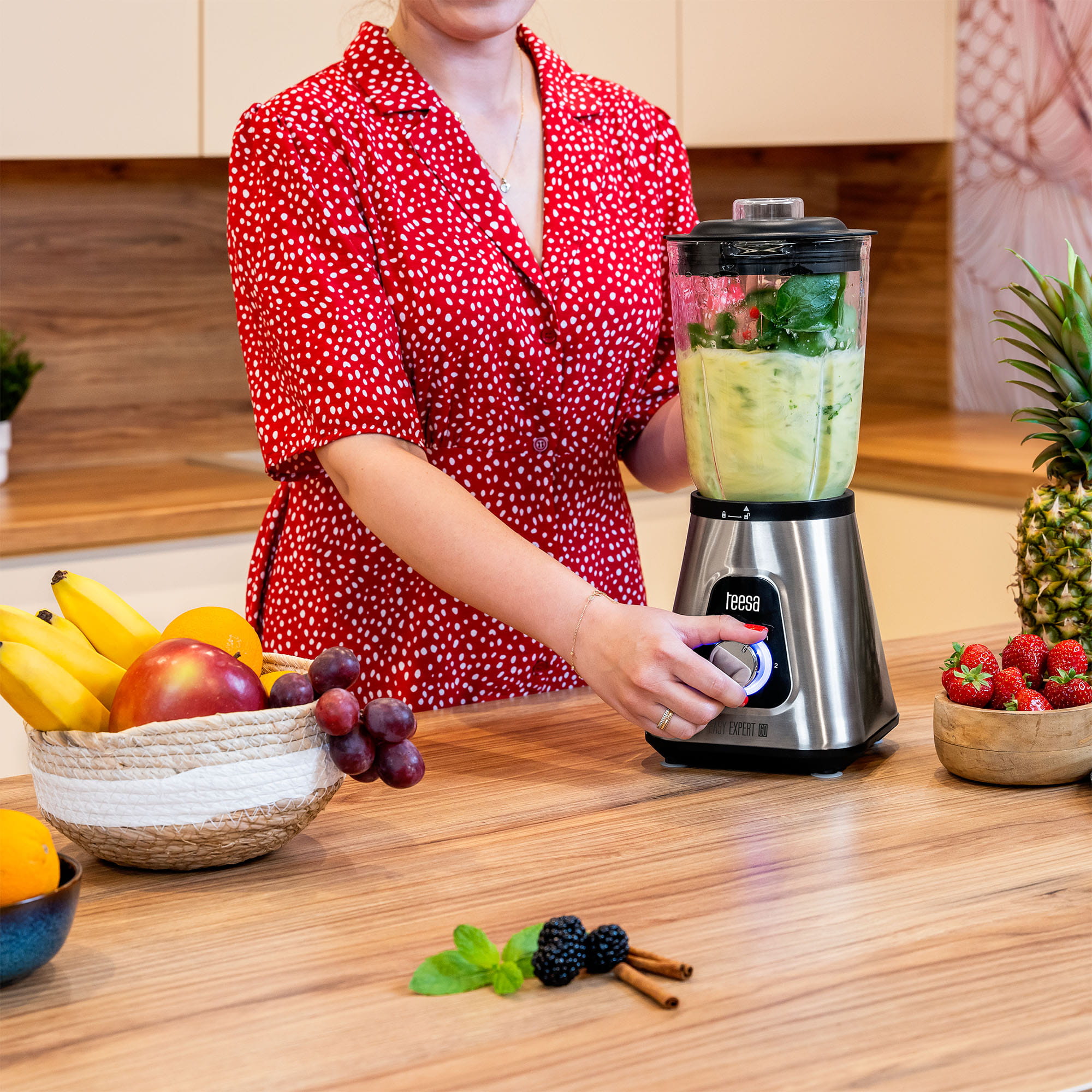 Uwielbiasz świeże koktajle, ale myśl o myciu blendera odbiera Ci chęć do ich przygotowania? Z blenderem kielichowym Teesa pożegnasz ten problem na zawsze, bo zarówno kielich, jak też pokrywę, ostrza oraz kubek pomiarowy możesz umyć w zmywarce.