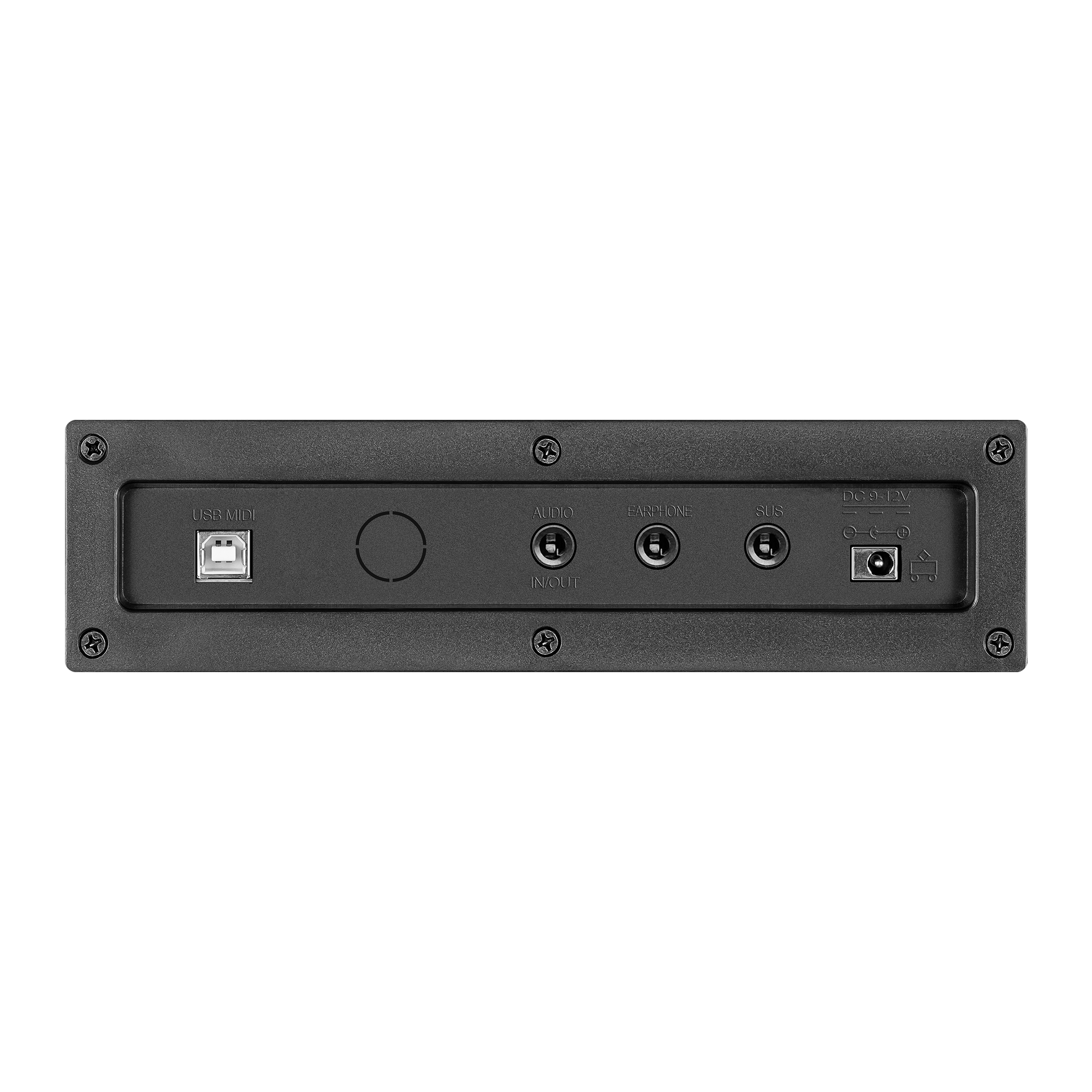 Elektroniczne pianino Kruger&Matz wyposażone zostało w Bluetooth 5.0, co umożliwia stabilne i szybkie bezprzewodowe połączenie z urządzeniami mobilnymi i swobodne korzystanie z aplikacji do nauki gry. programów do nagrywania oraz biblioteki cyfrowych partytur. Ponadto do dyspozycji masz USB-B MIDI , który pozwala na używanie instrumentu jako profesjonalnego kontrolera MIDI.