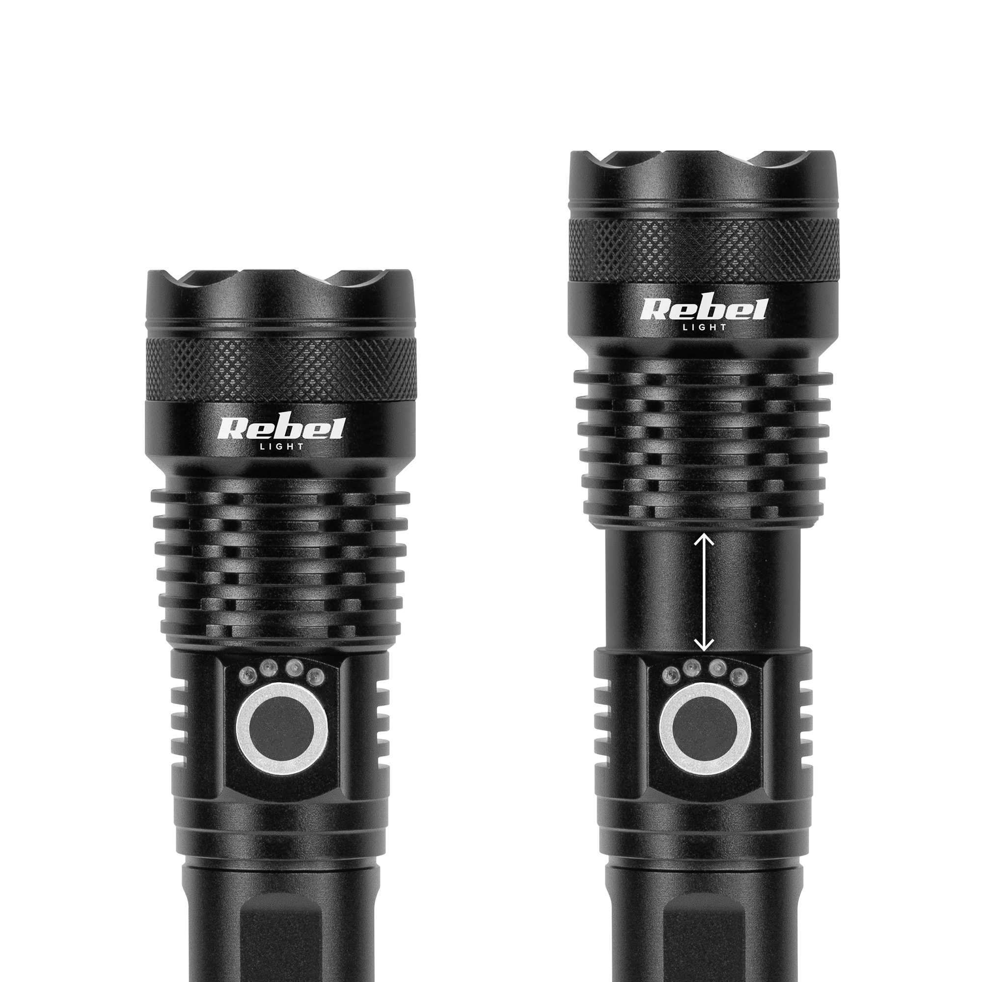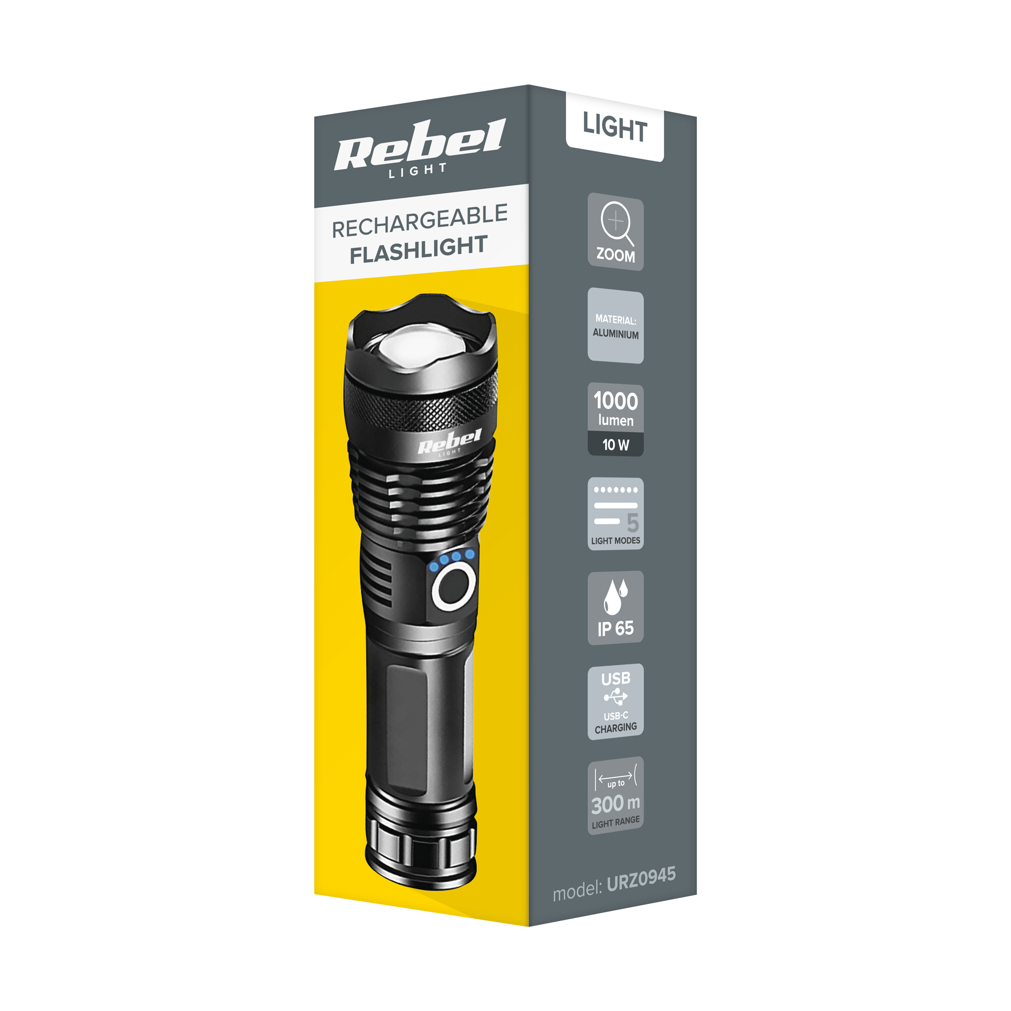 Akumulatorowa latarka LED Rebel 10 W zoom aluminium 1000 lm IP65 USB-C