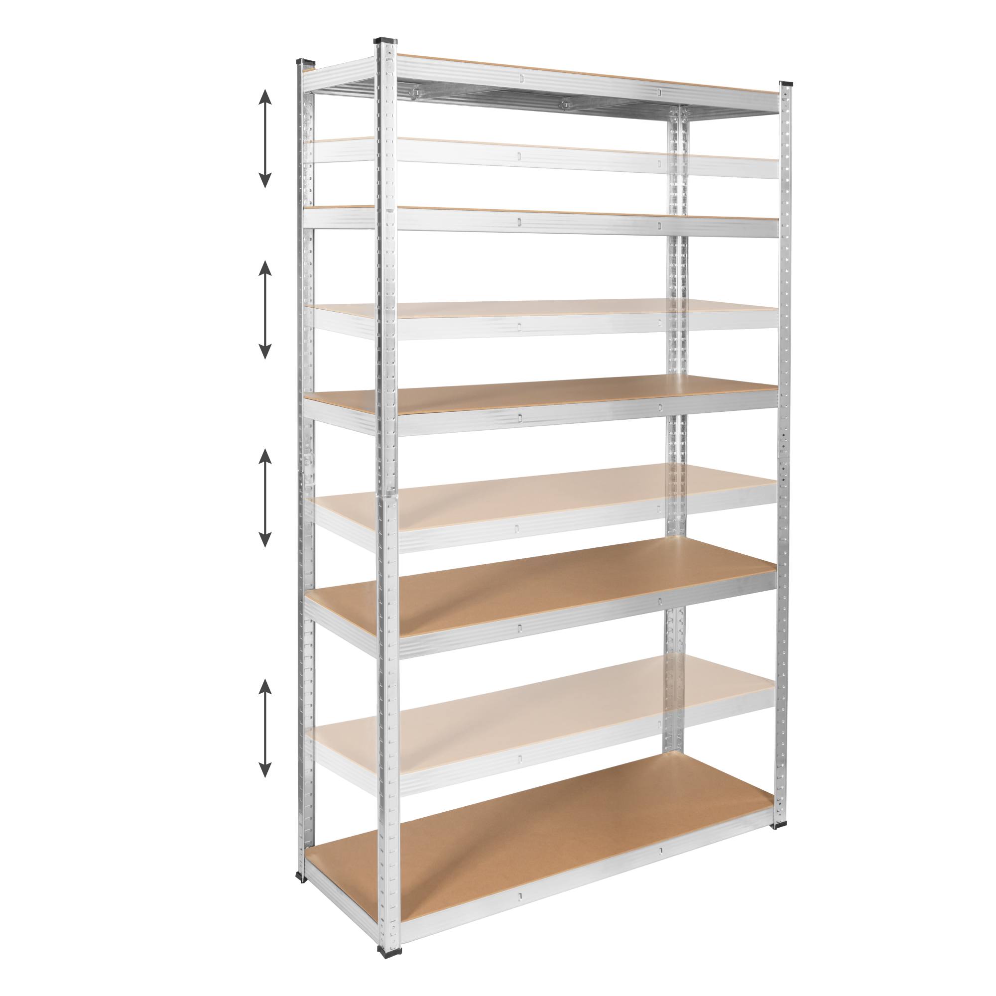 Regał jest wyposażony w 5 regulowalnych półek, co zależności od potrzeb daje Ci możliwość dowolnej konfiguracji przestrzeni w warsztacie czy magazynie. Możesz także dostosować odległość między półkami, aby pomieścić różne rozmiary przedmiotów.