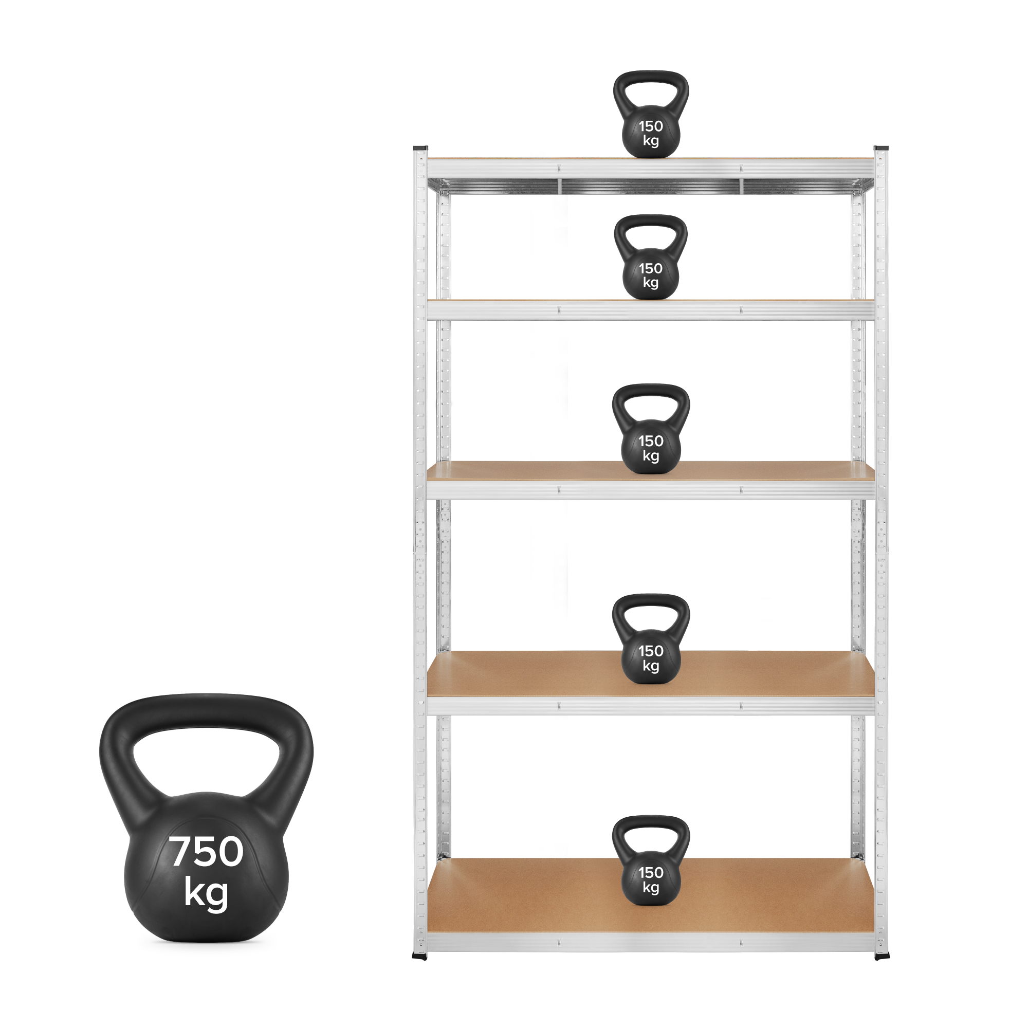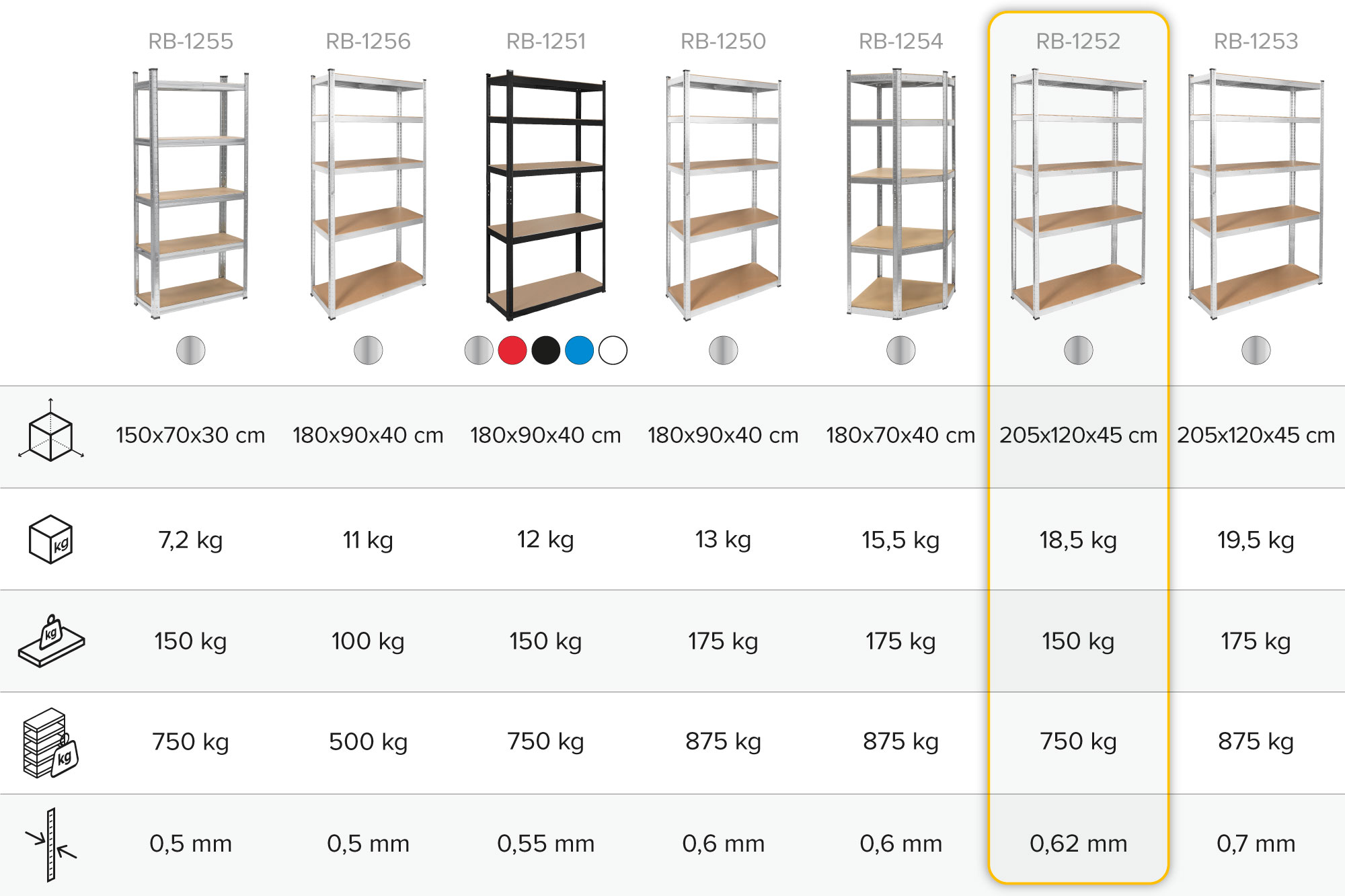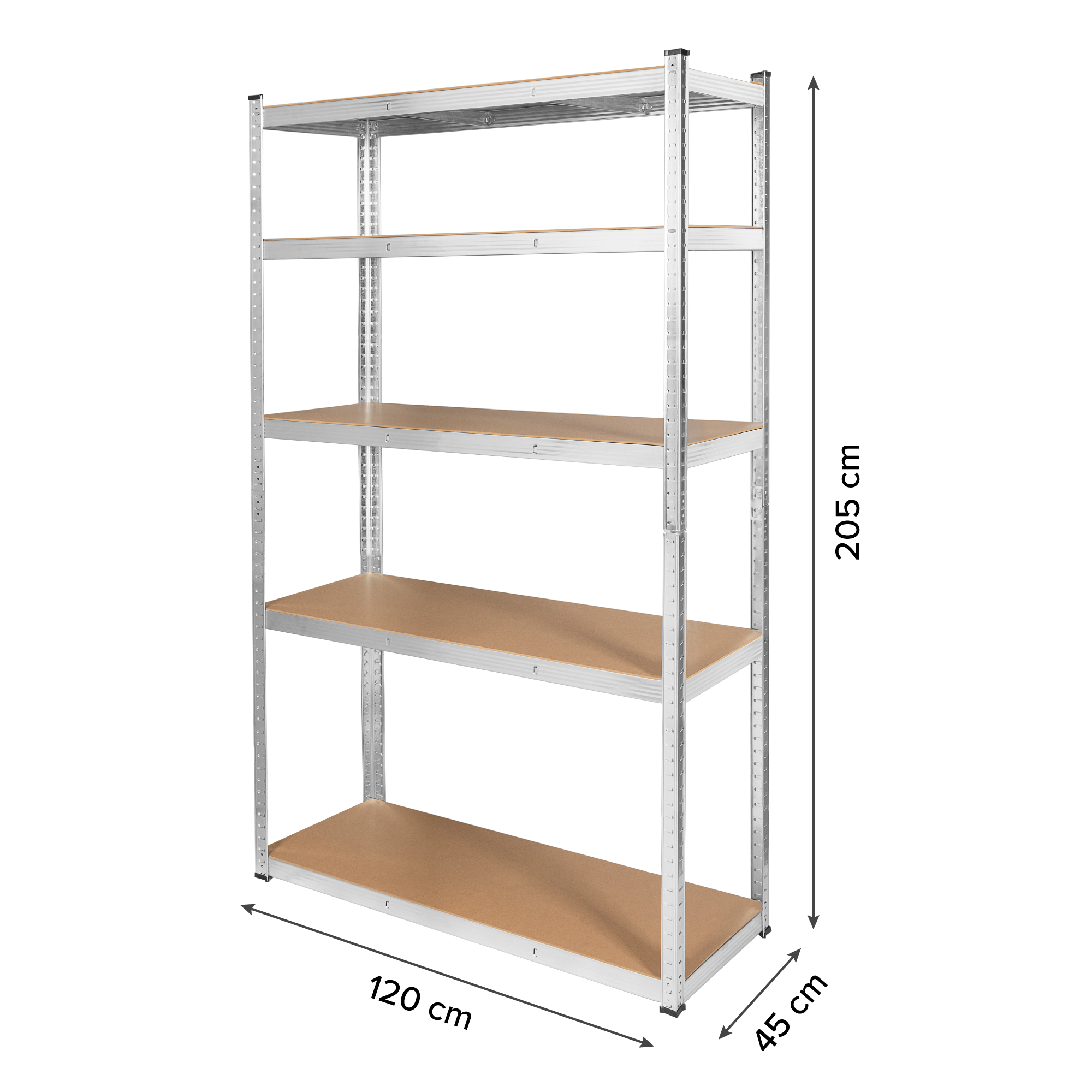 Regał warsztatowy z serii Rebel Tools dzięki solidnej konstrukcji z ocynkowanej stali i jest przystosowany do przechowywania zarówno lekkich jak i ciężkich przedmiotów. Wyposażony został w 5 mocnych półek, a każda z jest w stanie wytrzymać obciążenie 150 kg. Aby zminimalizować ryzyko usterki regału rozkładaj na półkach ciężar równomiernie.