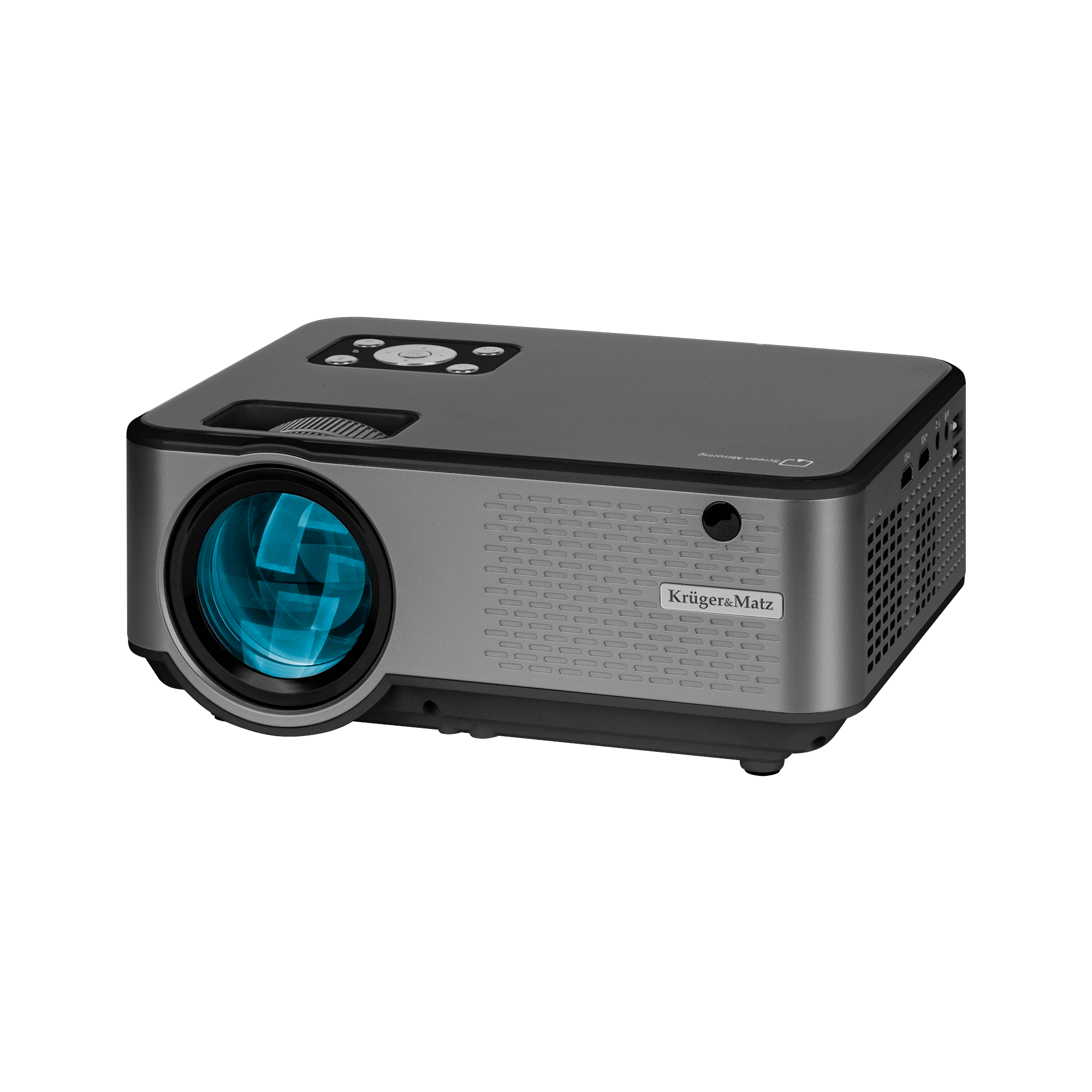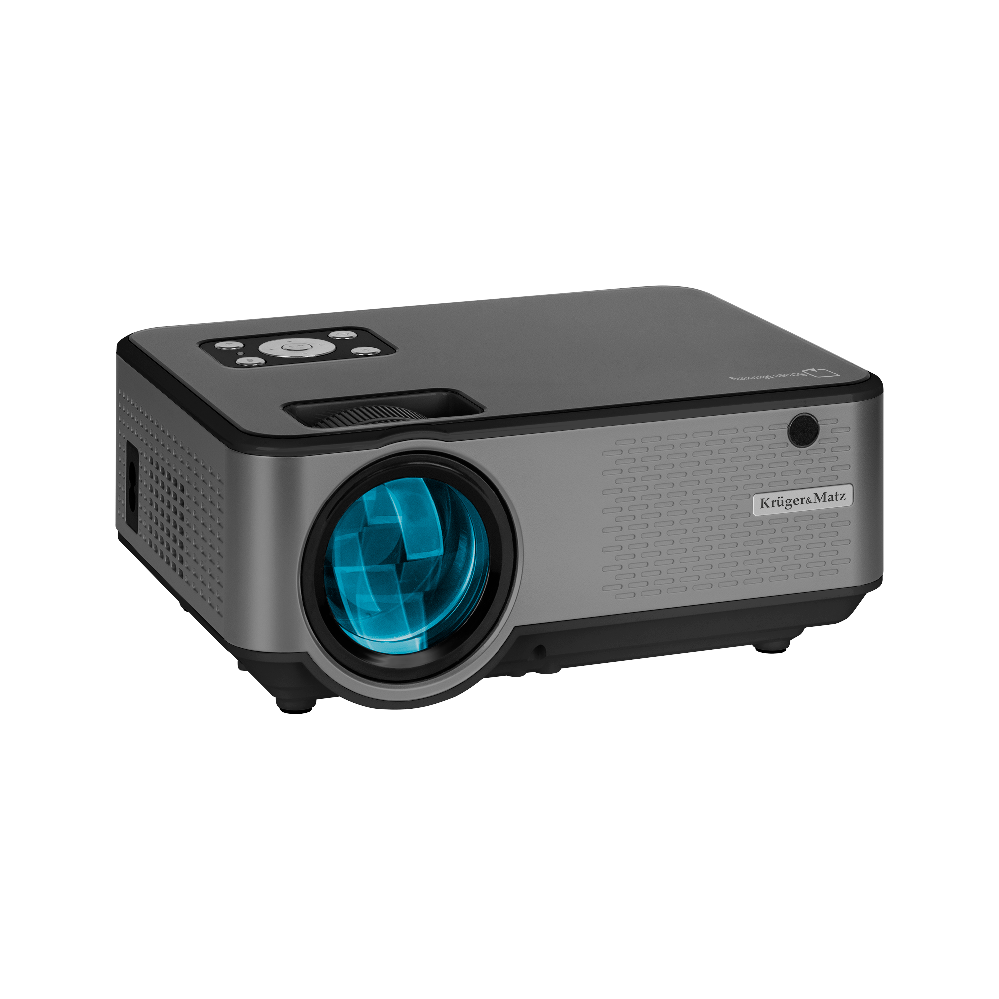Projektor multimedialny Kruger&Matz został wyposażony w dwa pokrętła, którymi wygodnie dostosujesz ustawienia obrazu do własnych wymagań. Pierwszym ręcznie ustawisz ostrość, natomiast drugie pozwoli na korekcję zniekształceń trapezowych.