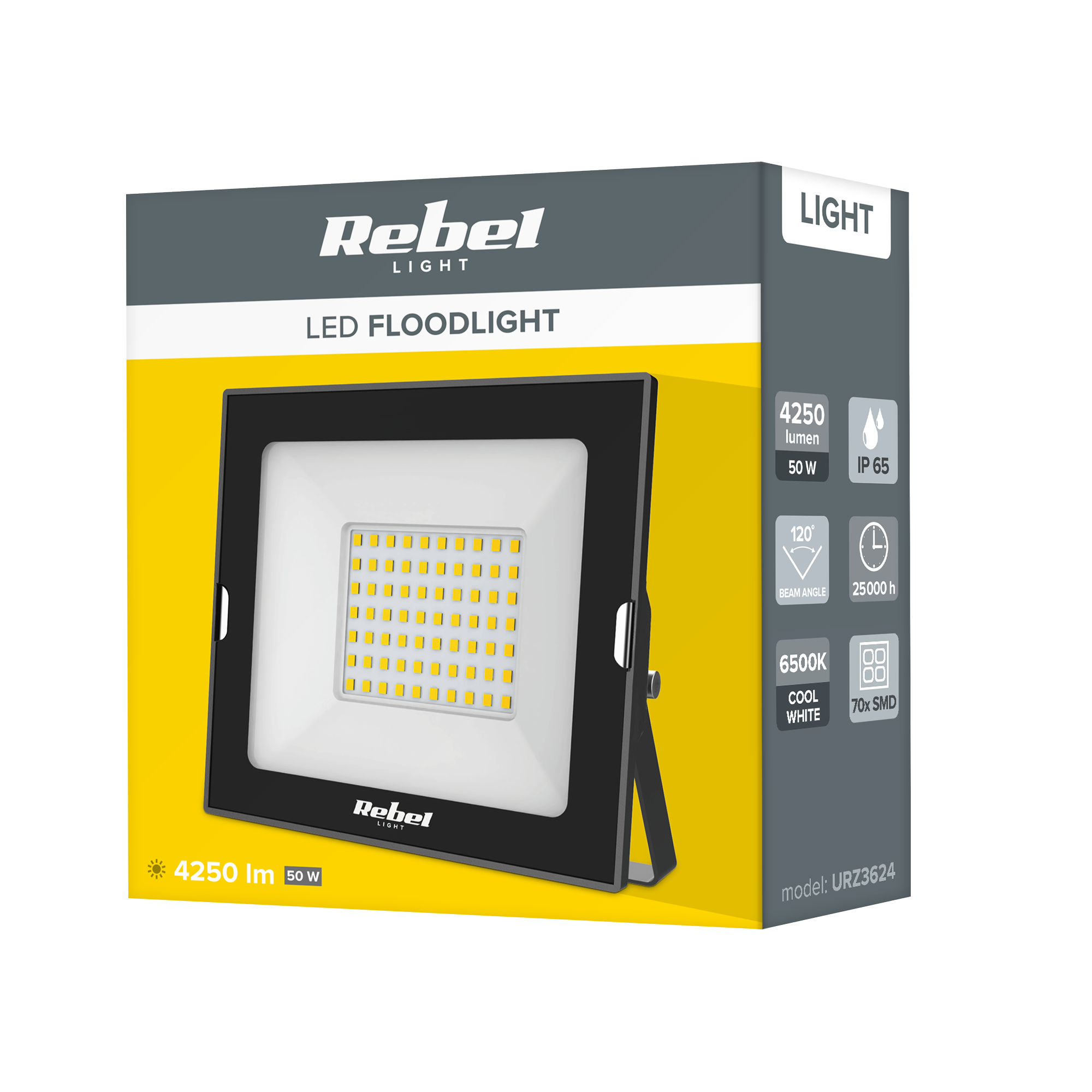 Reflektor Rebel o mocy 50 W to wysoko wydajne i jednocześnie oszczędne urządzenie, które generuje aż 2550 lumenów jasnego światła, osiągając przy tym efektywność na poziomie 85 lm/W. Urządzenie wyróżnia się żywotnością wynoszącą 25 000 godzin, co znacznie zmniejsza częstotliwość konieczności wymiany oraz obniża koszty utrzymania. Wykorzystanie 42 diod SMD2835 sprawia, że światło pozostaje intensywne i stabilne przez długi czas.