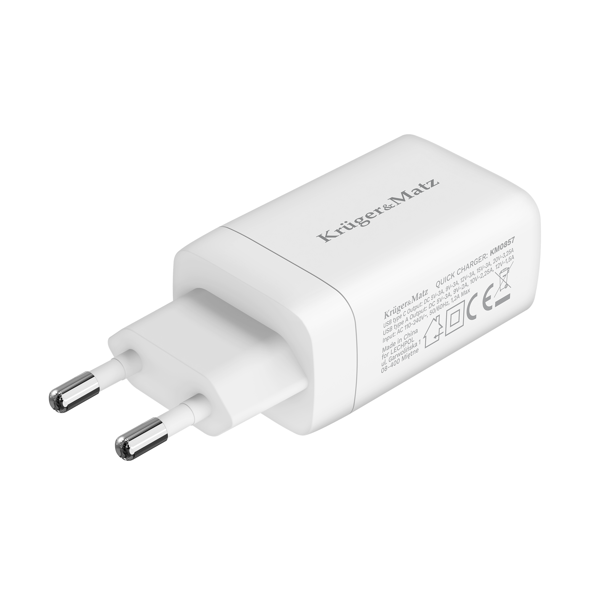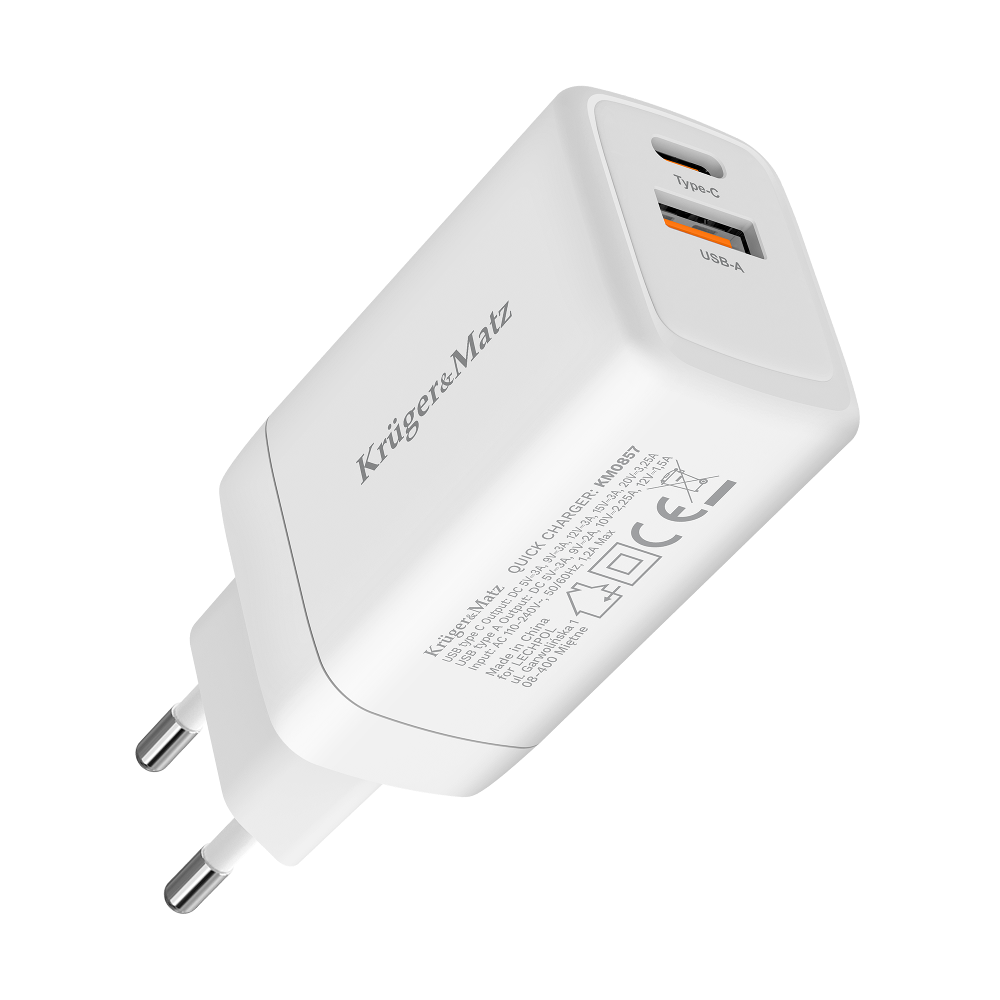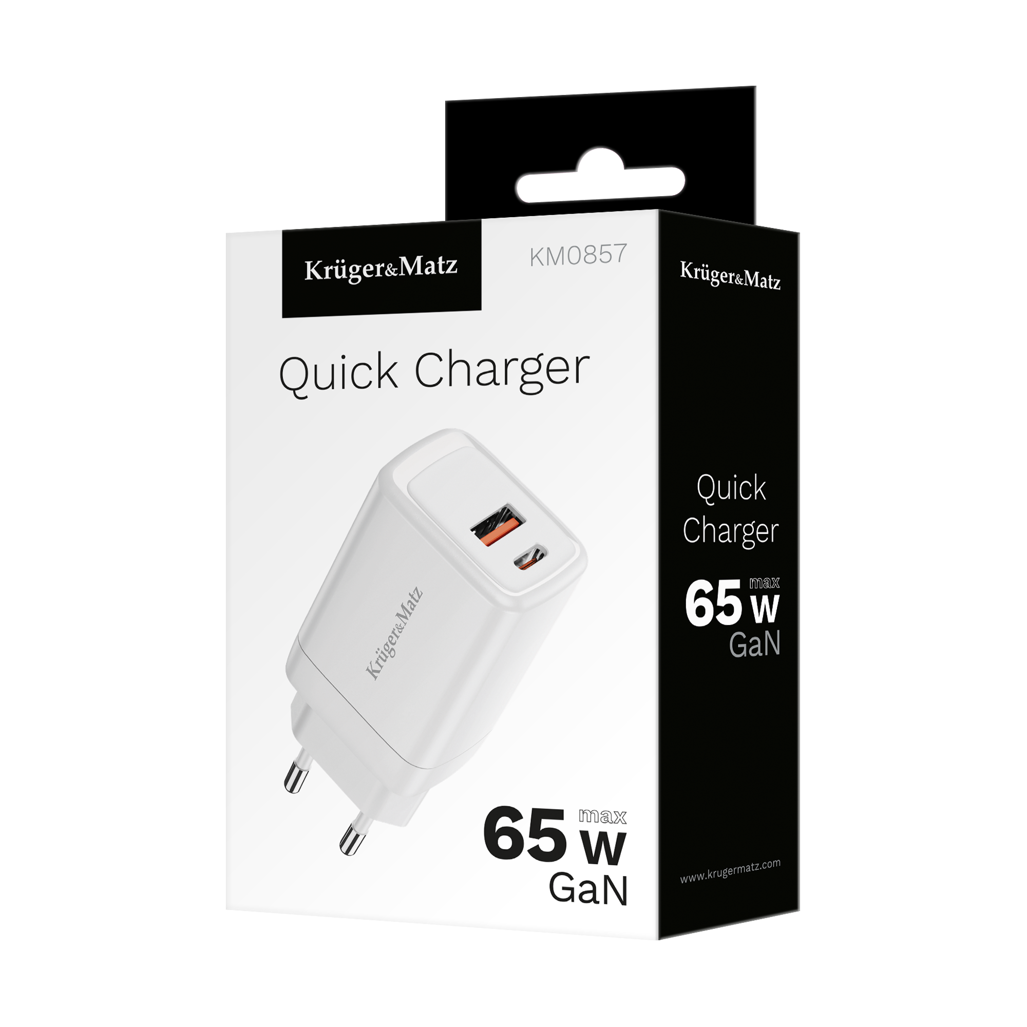Ładowarka sieciowa GaN Kruger&Matz 65 W z funkcją Power Delivery i Quick Charge