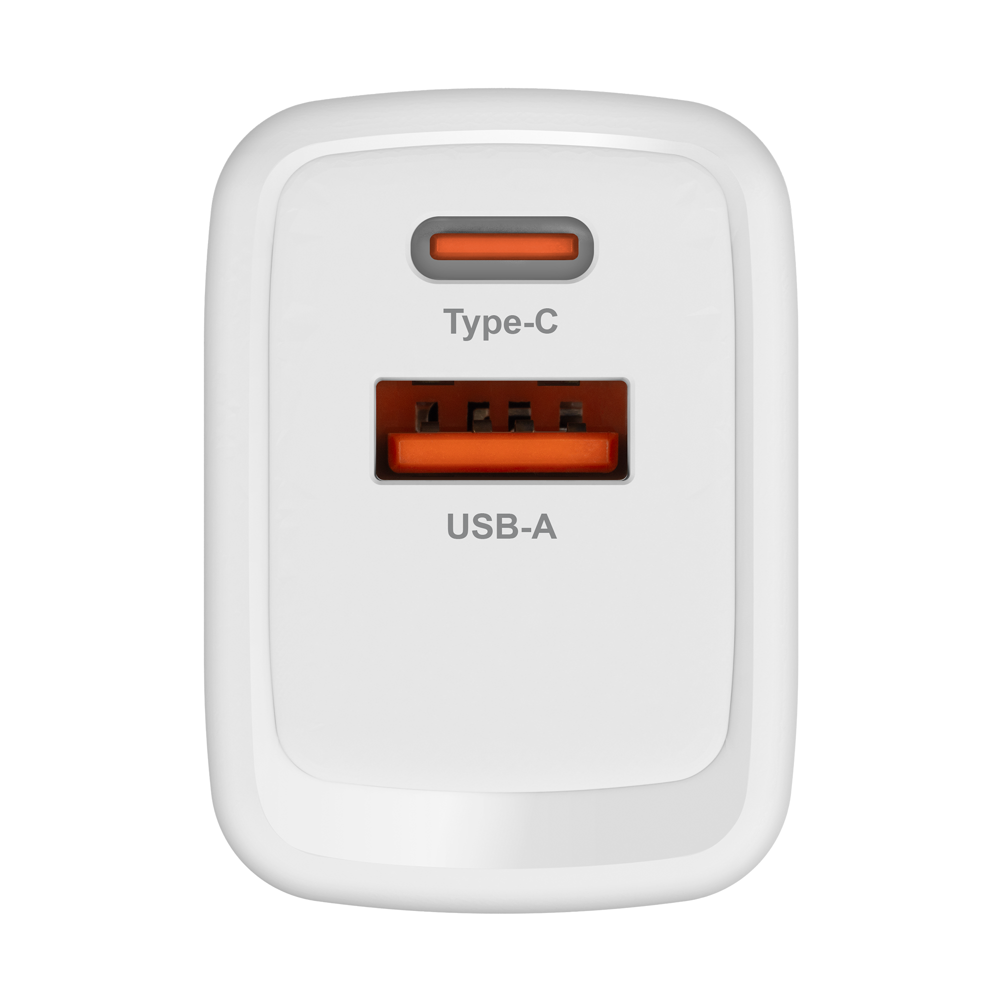 Kompaktowa obudowa ładowarki sieciowej KM0857 wyposażona została w dwa porty: USB typu A oraz USB typu C. Dzięki temu posiadając w domu odpowiednie typy kabli, tym jednym urządzeniem możesz zastąpić wiele innych zasilaczy.