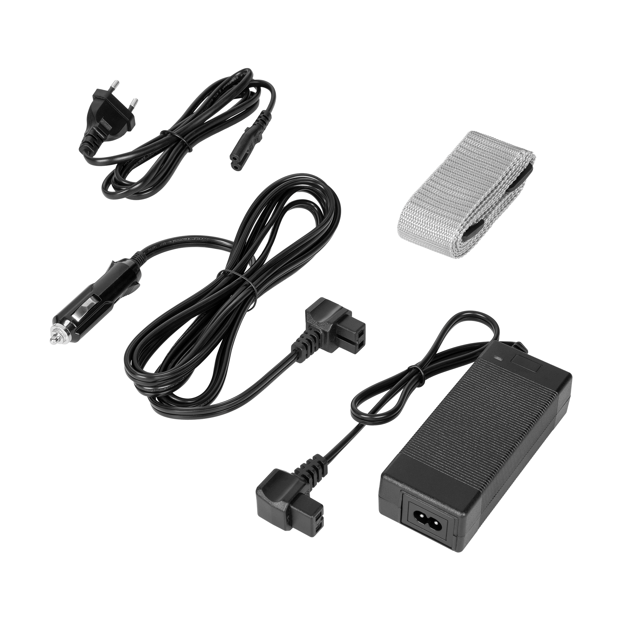 W zestawie: pasek, zasilacz sieciowy, przewód zasilający z gniazda zapalniczki samochodowej