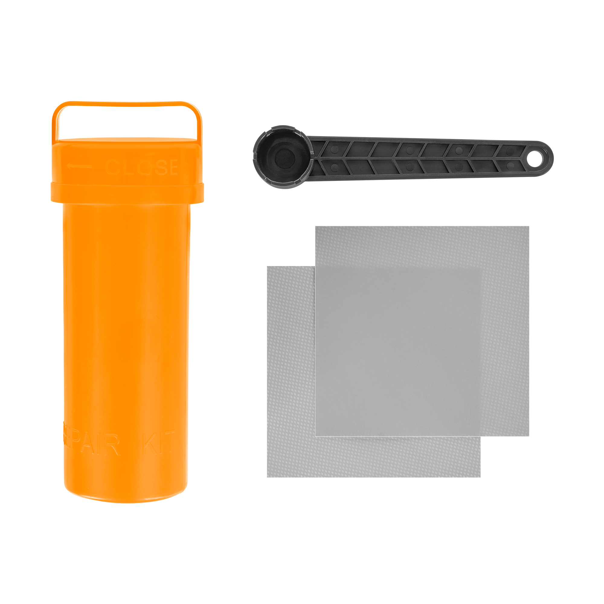 W zestawie: 3x statecznik, leash, wiosło, siedzisko kajakowe, pompka ręczna, plecak transportowy, zestaw naprawczy (łatki, klucz do zaworu)