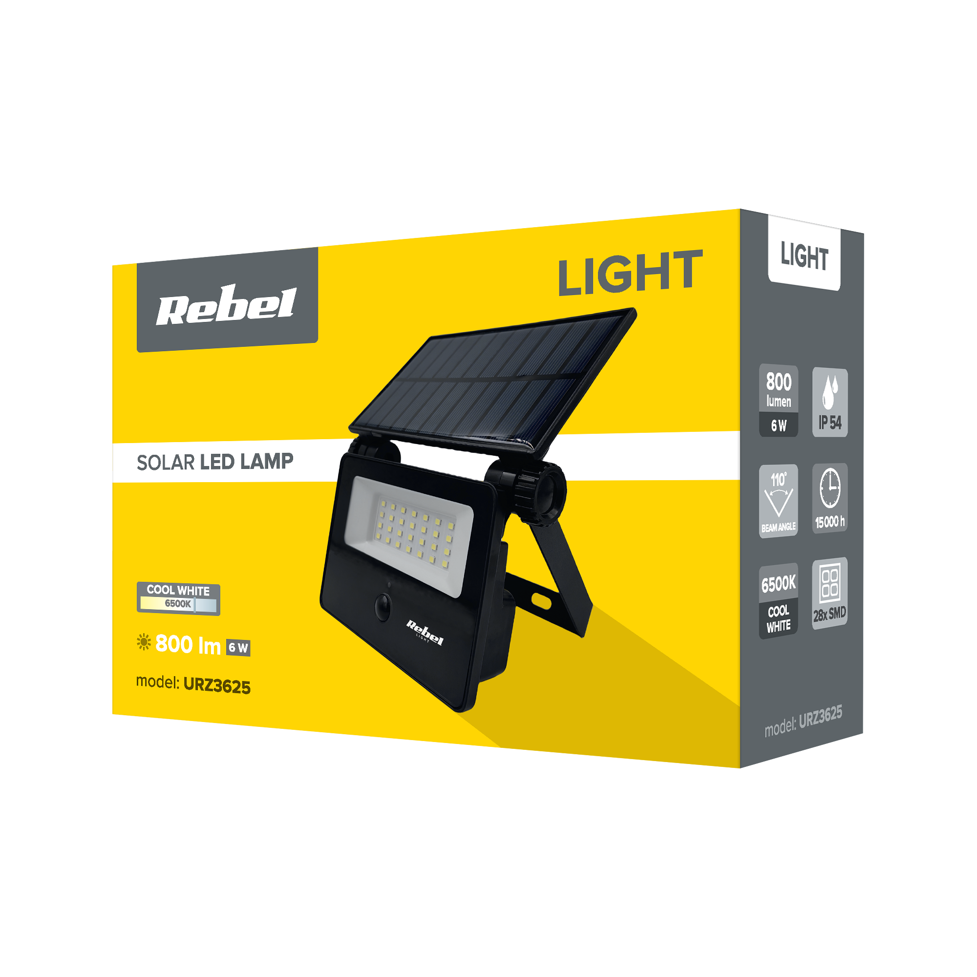 Lampa wyposażona w 28 diod SMD2835 zapewnia moc 6 W i strumień świetlny 800 lumenów. Emituje światło o temperaturze barwowej 6500 K, co pozwala na jasne i wyraźne oświetlenie przestrzeni zewnętrznych.