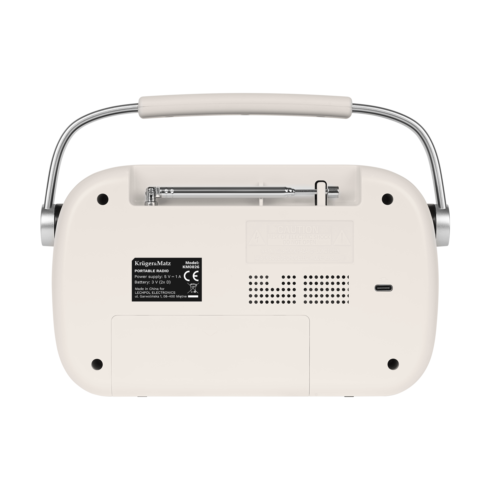 Radio Kruger&Matz oferuje dwie opcje zasilania: przez kabel USB lub za pomocą dwóch baterii R20. Dzięki temu możesz korzystać z radia w domu, podłączając je do prądu lub w plenerze, korzystając z zasilania bateryjnego. To idealne rozwiązanie, które zapewnia mobilność i wygodę, niezależnie od miejsca użytkowania.