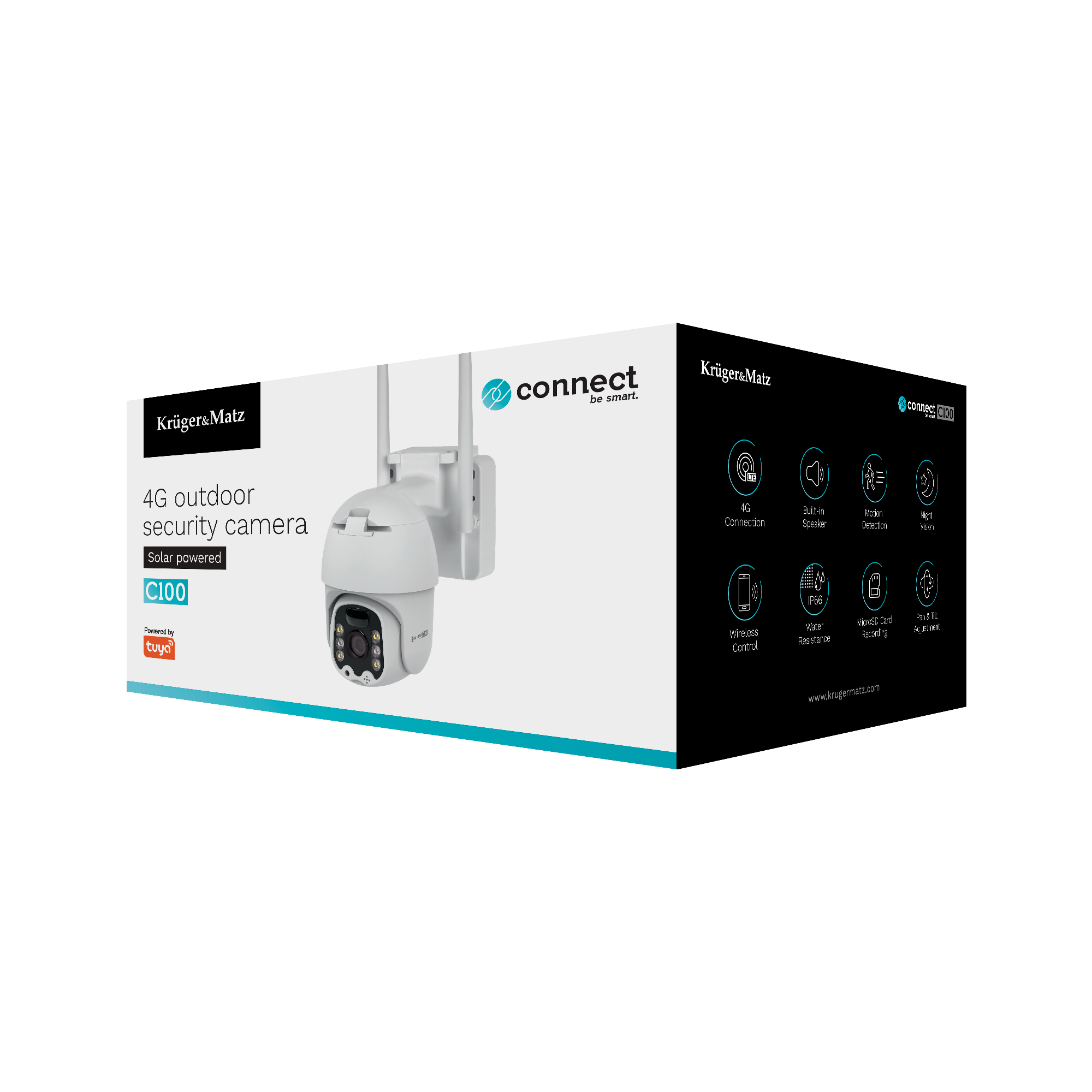 Bezprzewodowa kamera Kruger&Matz Connect C100 to doskonałe doposażenie Twojego sprzętu smart home. Urządzenie podłączysz do Internetu poprzez wbudowany modem 4G, dzięki czemu możesz zarządzać jego funkcjami w aplikacji TuyaSmart. Niezależnie gdzie jesteś, możesz w każdym momencie sprawdzić co dzieje się na Twoim podwórku.