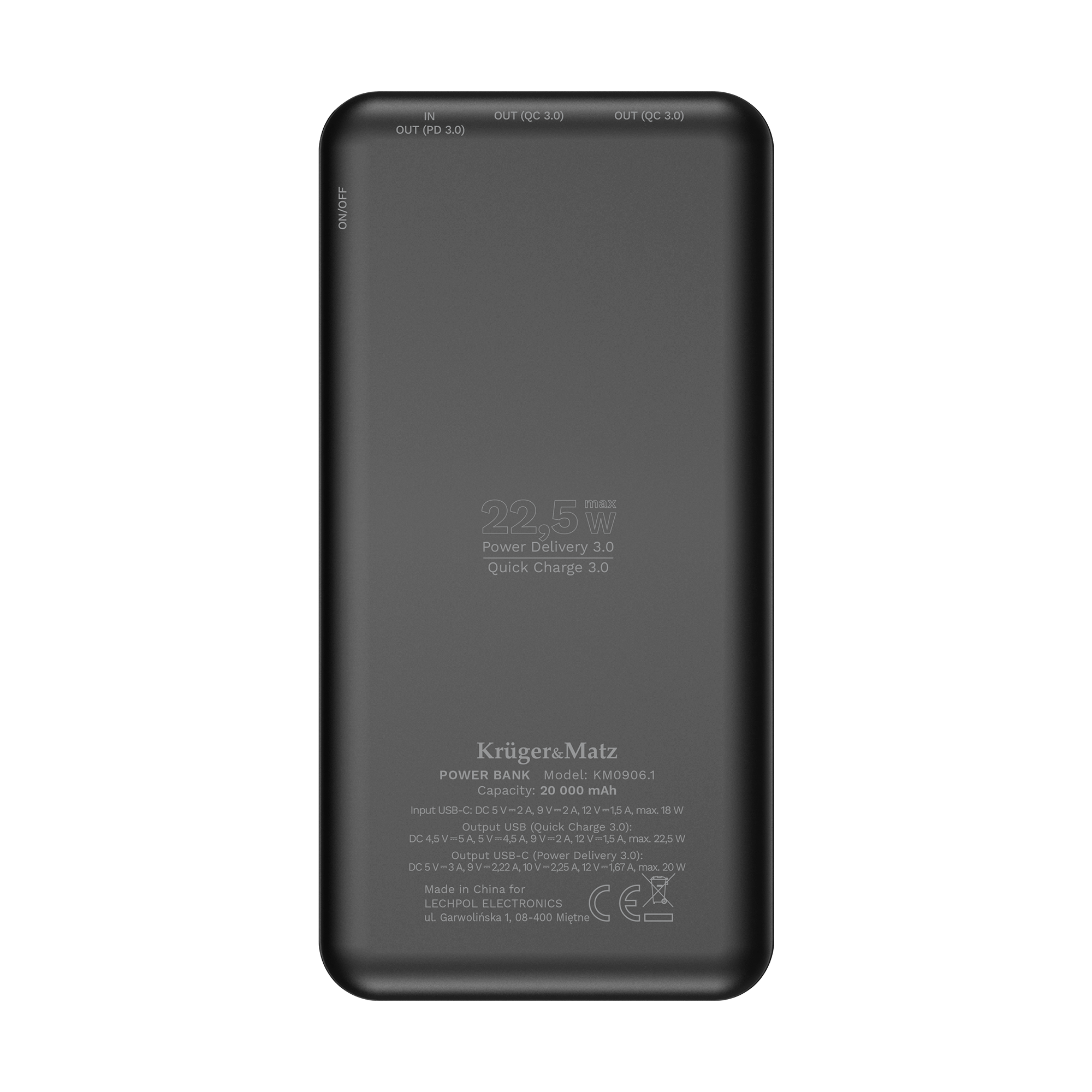 Power bank 20 000 mAh Kruger&Matz z funkcją szybkiego ładowania