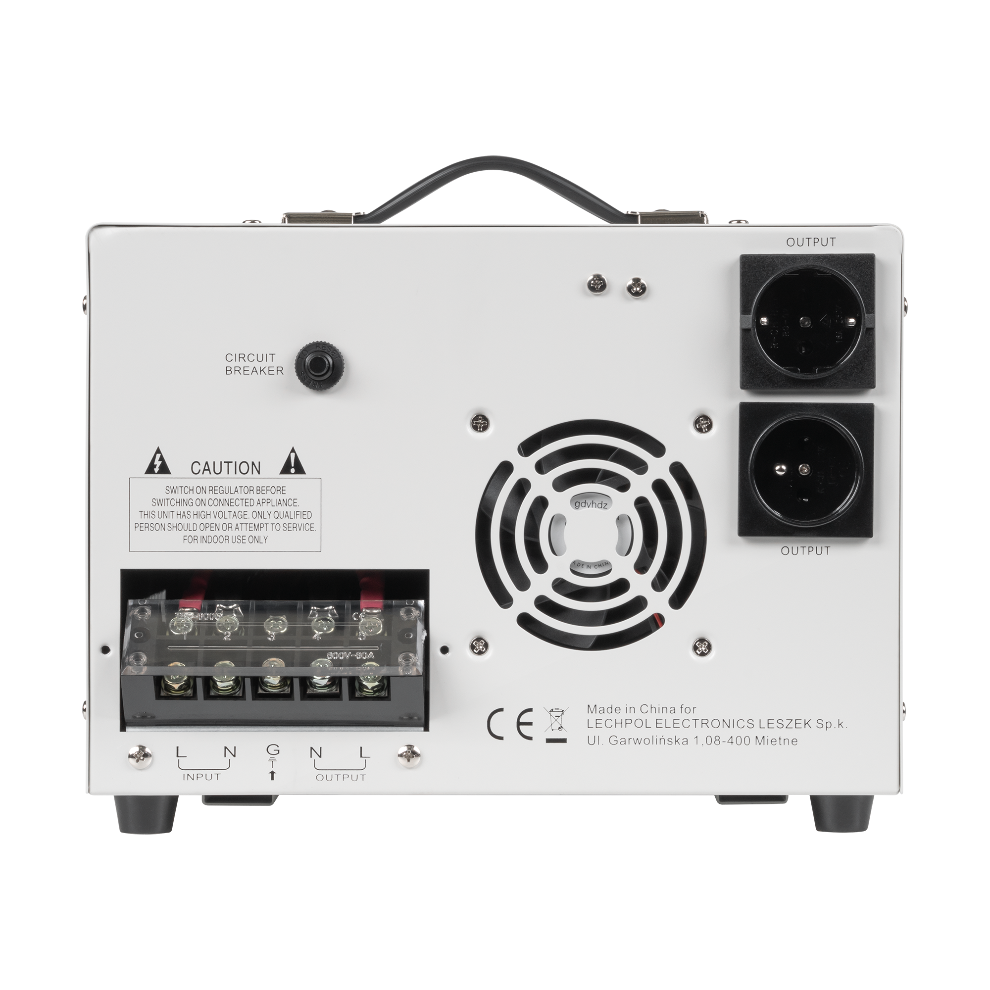 Stabilizator posiada zabezpieczenia przed zwarciami, przegrzaniem i zbyt wysokim napięciem. Funkcje te pomagają w ochronie podłączonych urządzeń przed nagłymi zmianami parametrów sieci elektrycznej.