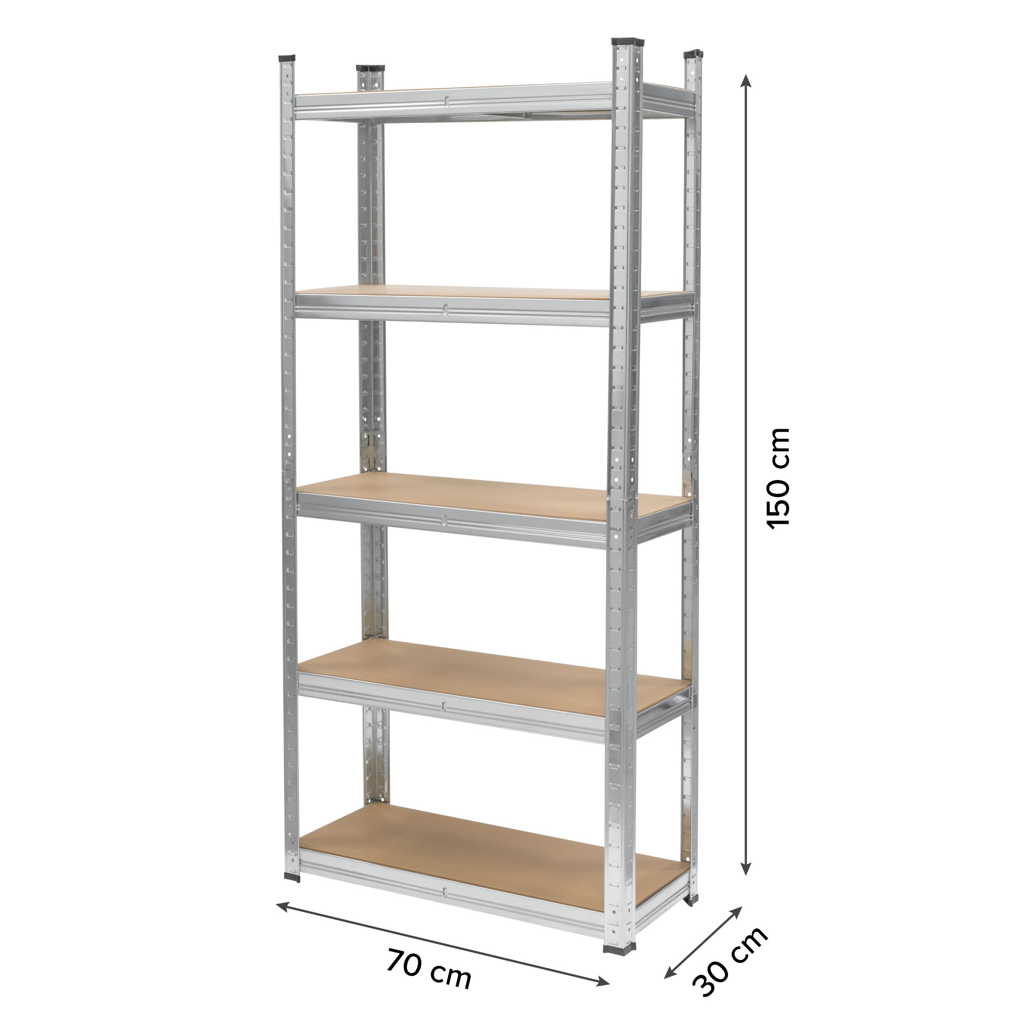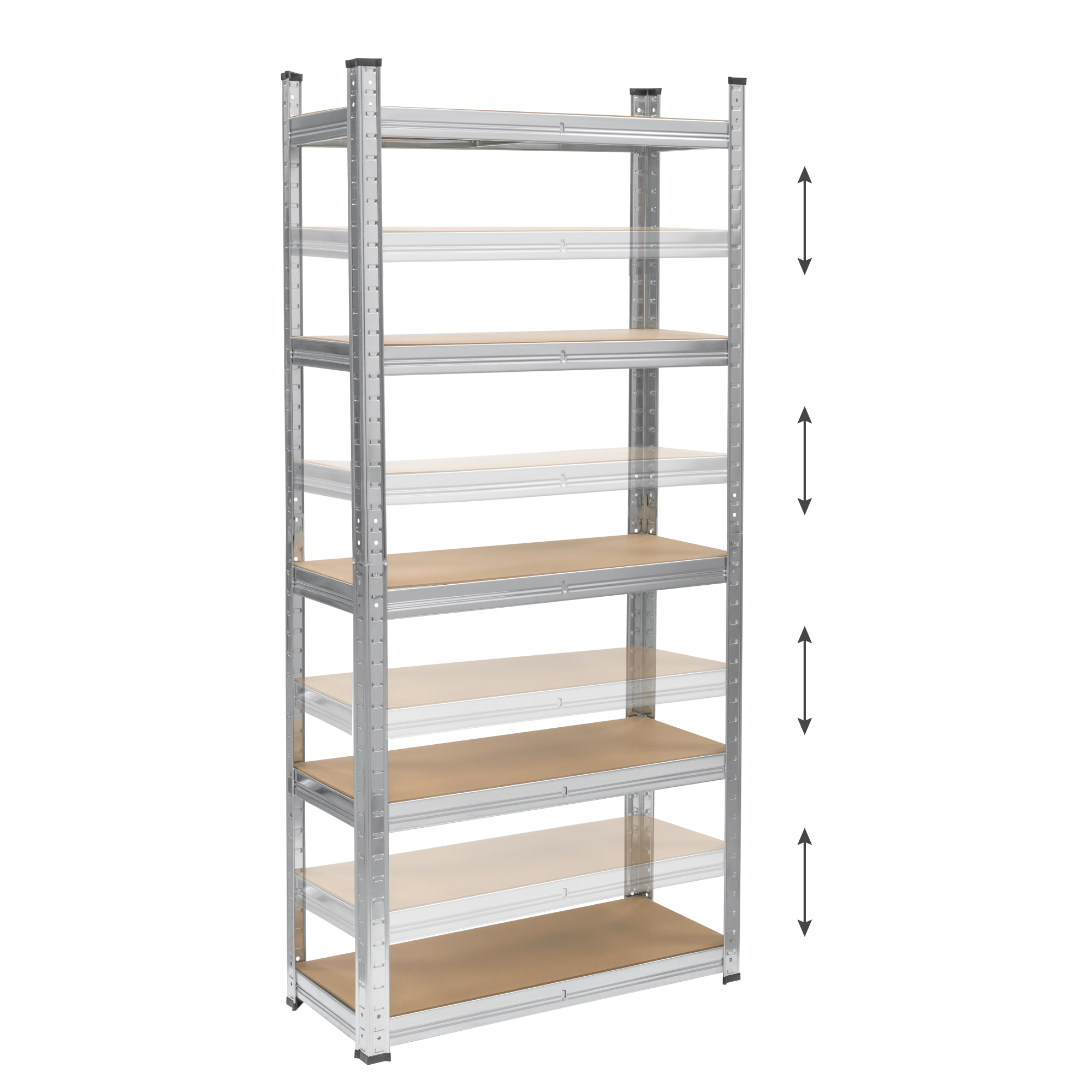 Regał jest wyposażony w 5 regulowalnych półek, co zależności od potrzeb daje Ci możliwość dowolnej konfiguracji przestrzeni w warsztacie czy magazynie. Możesz także dostosować odległość między półkami, aby pomieścić różne rozmiary przedmiotów.