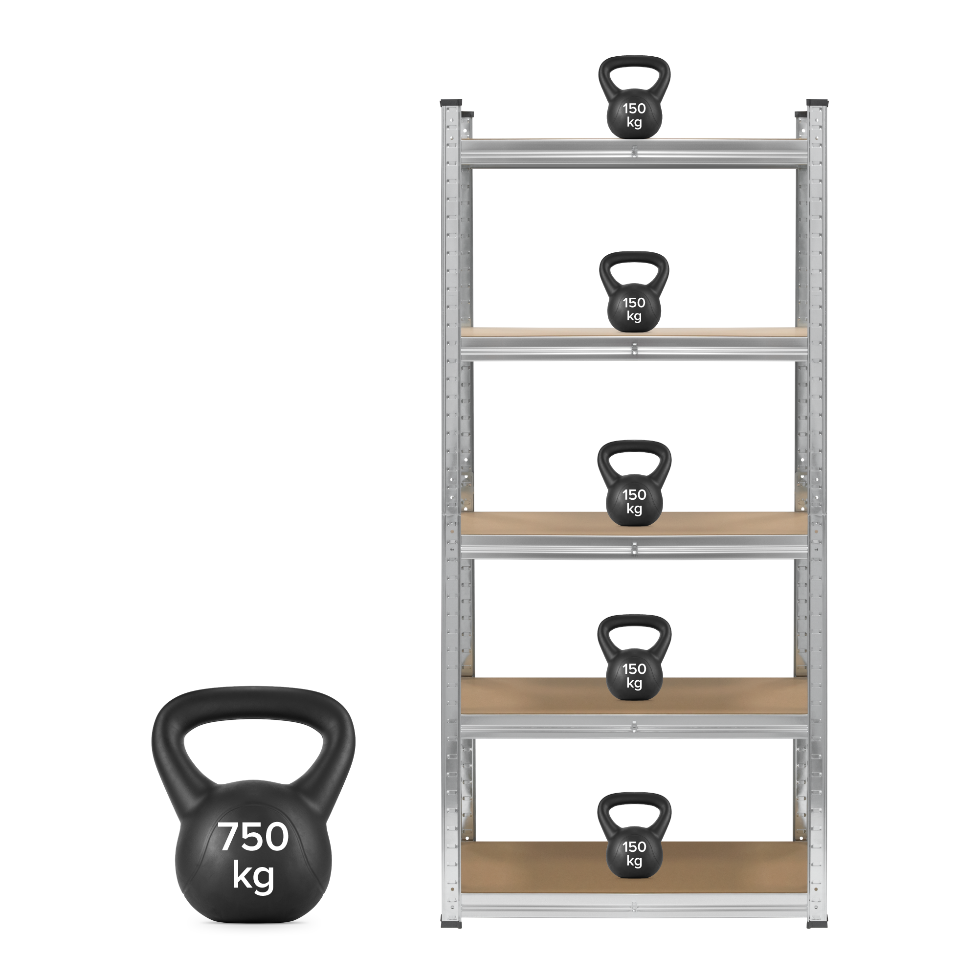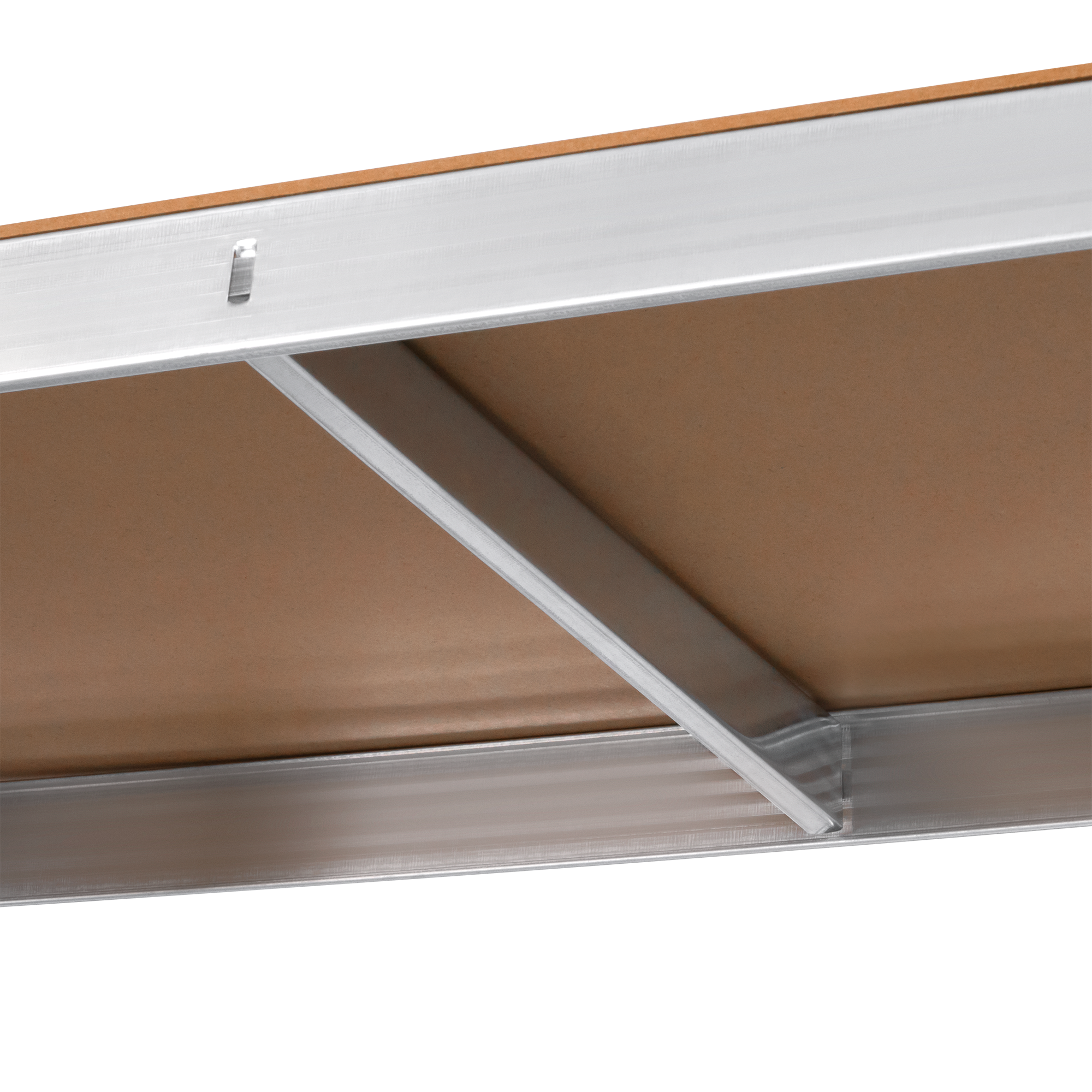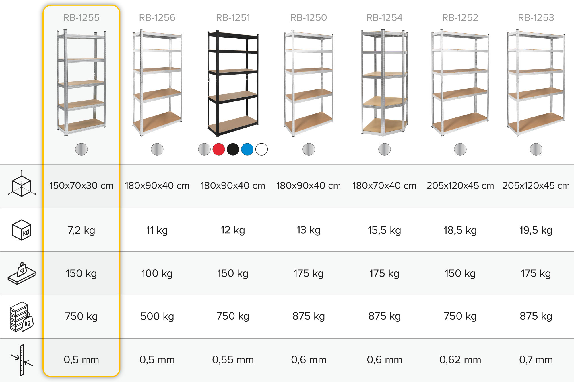 Regał warsztatowy z serii Rebel Tools dzięki solidnej konstrukcji z ocynkowanej stali i jest przystosowany do przechowywania zarówno lekkich jak i ciężkich przedmiotów. Wyposażony został w 5 mocnych półek, a każda z jest w stanie wytrzymać obciążenie 150 kg. Aby zminimalizować ryzyko usterki regału rozkładaj na półkach ciężar równomiernie.