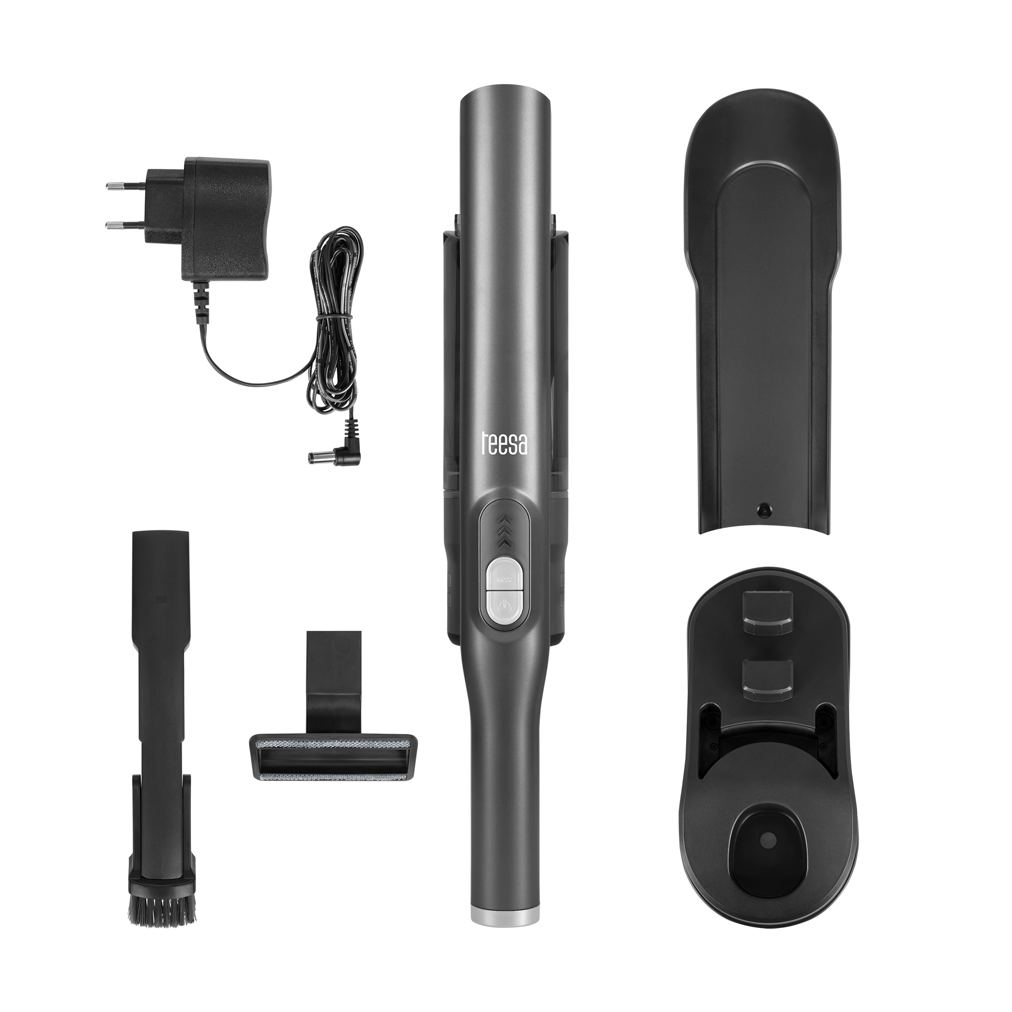 Mini odkurzacz ręczny Teesa to kompaktowe rozwiązanie do szybkiego sprzątania. Idealnie sprawdzi się do usuwania kurzu, okruchów i sierści zwierząt z trudno dostępnych miejsc w domu oraz samochodzie. Dzięki przenośnej konstrukcji i wydajnej baterii zawsze jest gotowy do pracy.