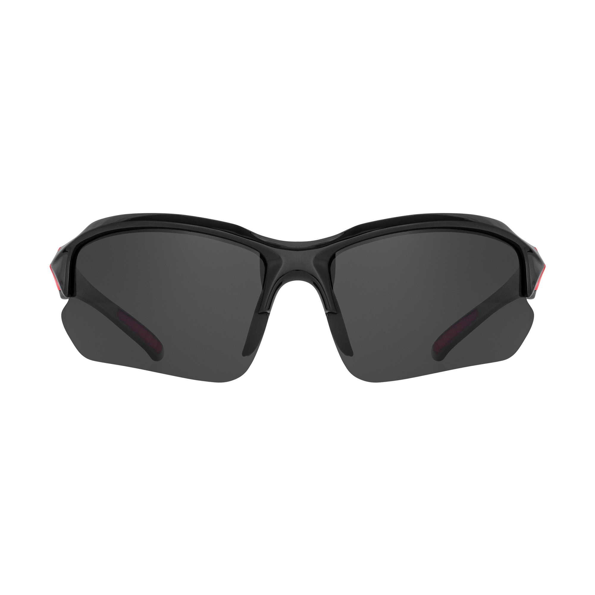 Oprawki z lekkiego tworzywa są odporne na uszkodzenia i idealnie sprawdzają się w ruchu. Wygodne, plastikowe nanośniki zintegrowane z oprawką oraz zauszniki zapewniają stabilność bez ucisku. Sportowy design w czarno-czerwonej kolorystyce dodaje charakteru i nowoczesnego stylu.