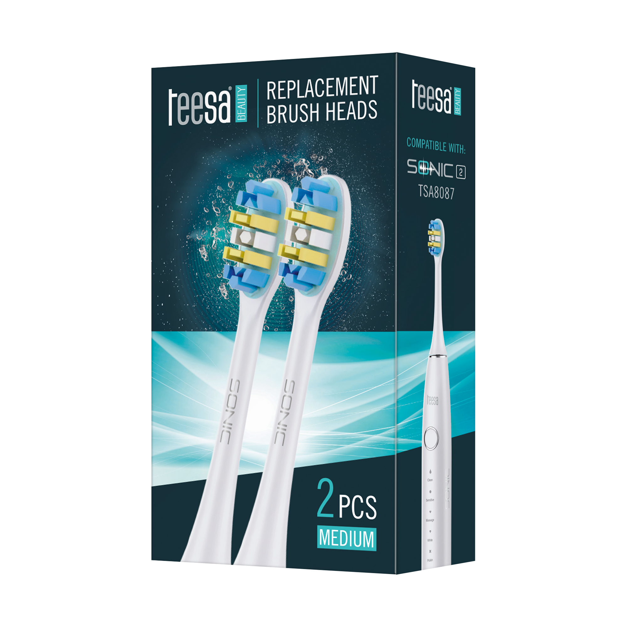 Główki zostały zaprojektowane tak, by łączyć skuteczność czyszczenia z delikatnością dla dziąseł. Średnie włosie jest uniwersalne – idealnie sprawdzi się zarówno u osób z wrażliwymi dziąsłami, jak i u tych, którzy oczekują skutecznego usuwania płytki nazębnej. Pasują do szczoteczek Teesa SONIC 2, a ich ergonomiczny kształt ułatwia dotarcie do trudno dostępnych miejsc.