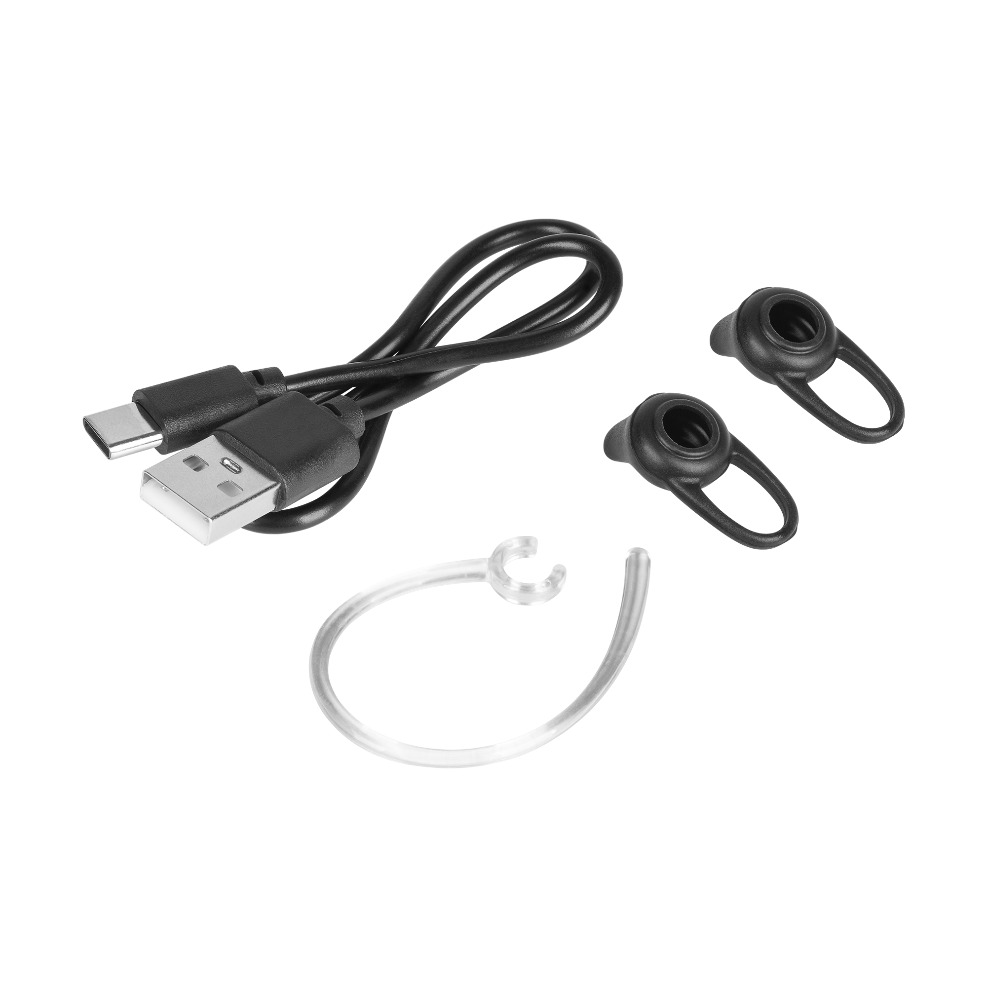 W zestawie: kabel USB-C, 1 para silikonowych wkładek dousznych, zaczep do słuchawki