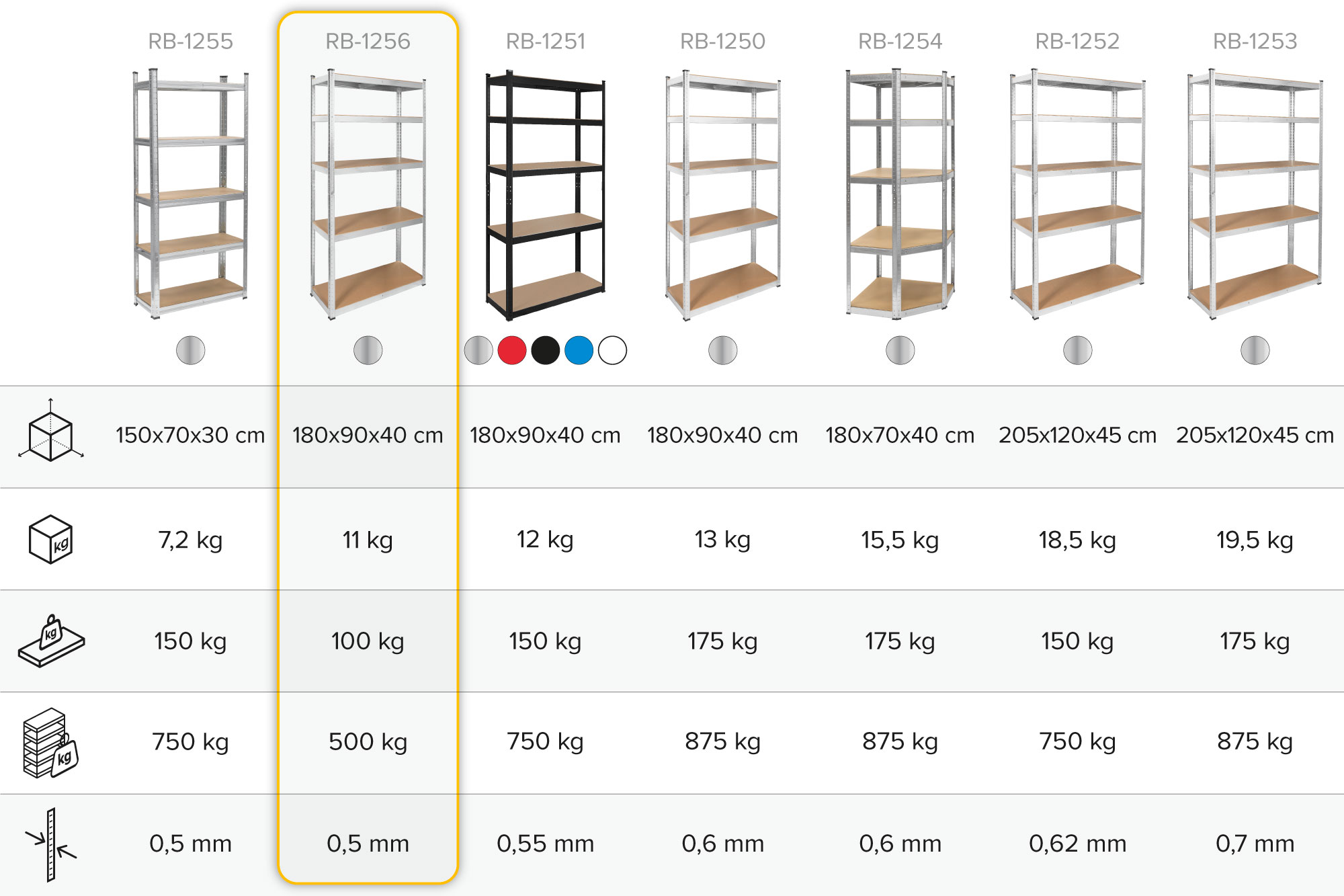 Regał warsztatowy z serii Rebel Tools dzięki solidnej konstrukcji z ocynkowanej stali i jest przystosowany do przechowywania zarówno lekkich jak i ciężkich przedmiotów. Wyposażony został w 5 mocnych półek, a każda z jest w stanie wytrzymać obciążenie 100 kg. Aby zminimalizować ryzyko usterki regału rozkładaj na półkach ciężar równomiernie.
