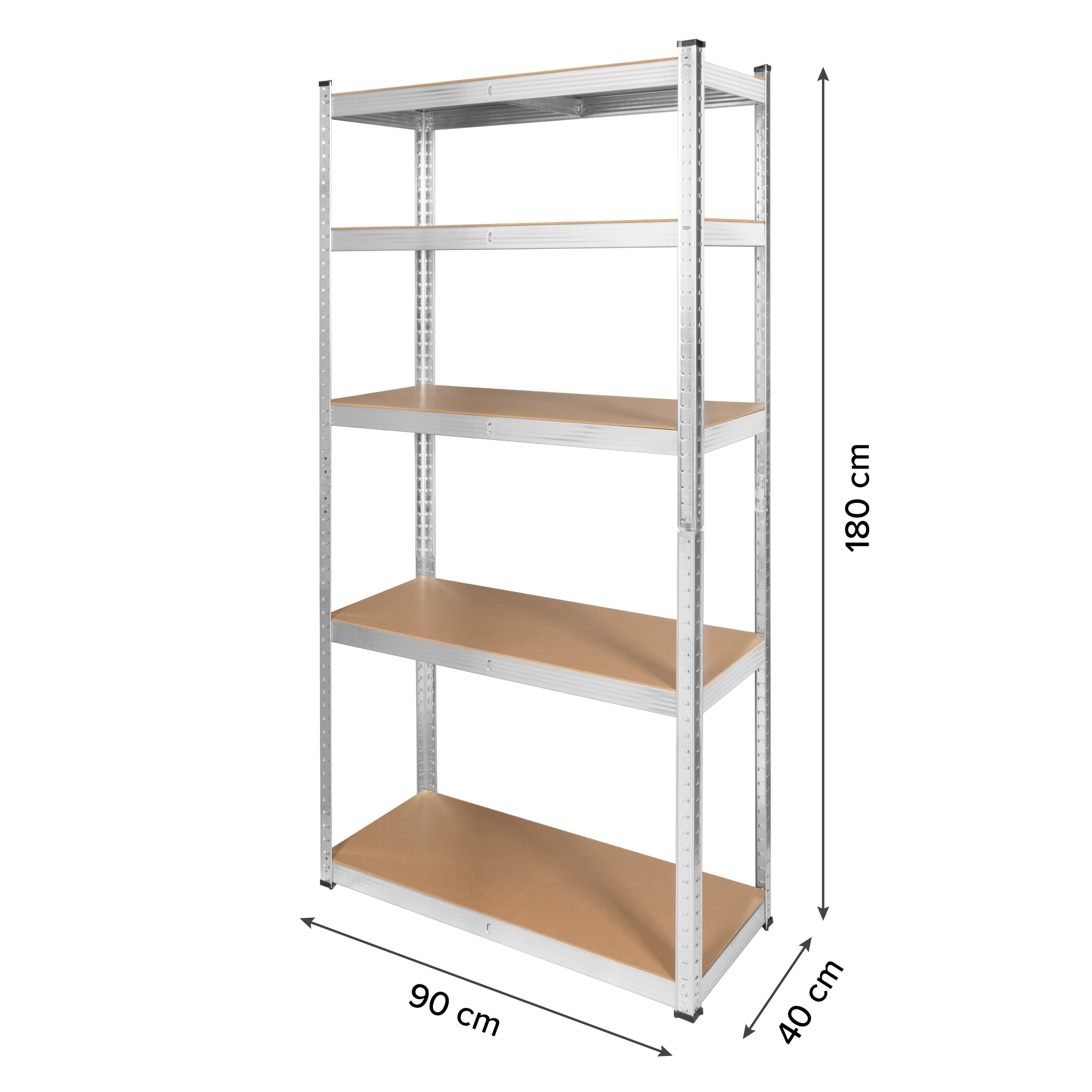 Regał jest wyposażony w 5 regulowalnych półek, co zależności od potrzeb daje Ci możliwość dowolnej konfiguracji przestrzeni w warsztacie czy magazynie. Możesz także dostosować odległość między półkami, aby pomieścić różne rozmiary przedmiotów.