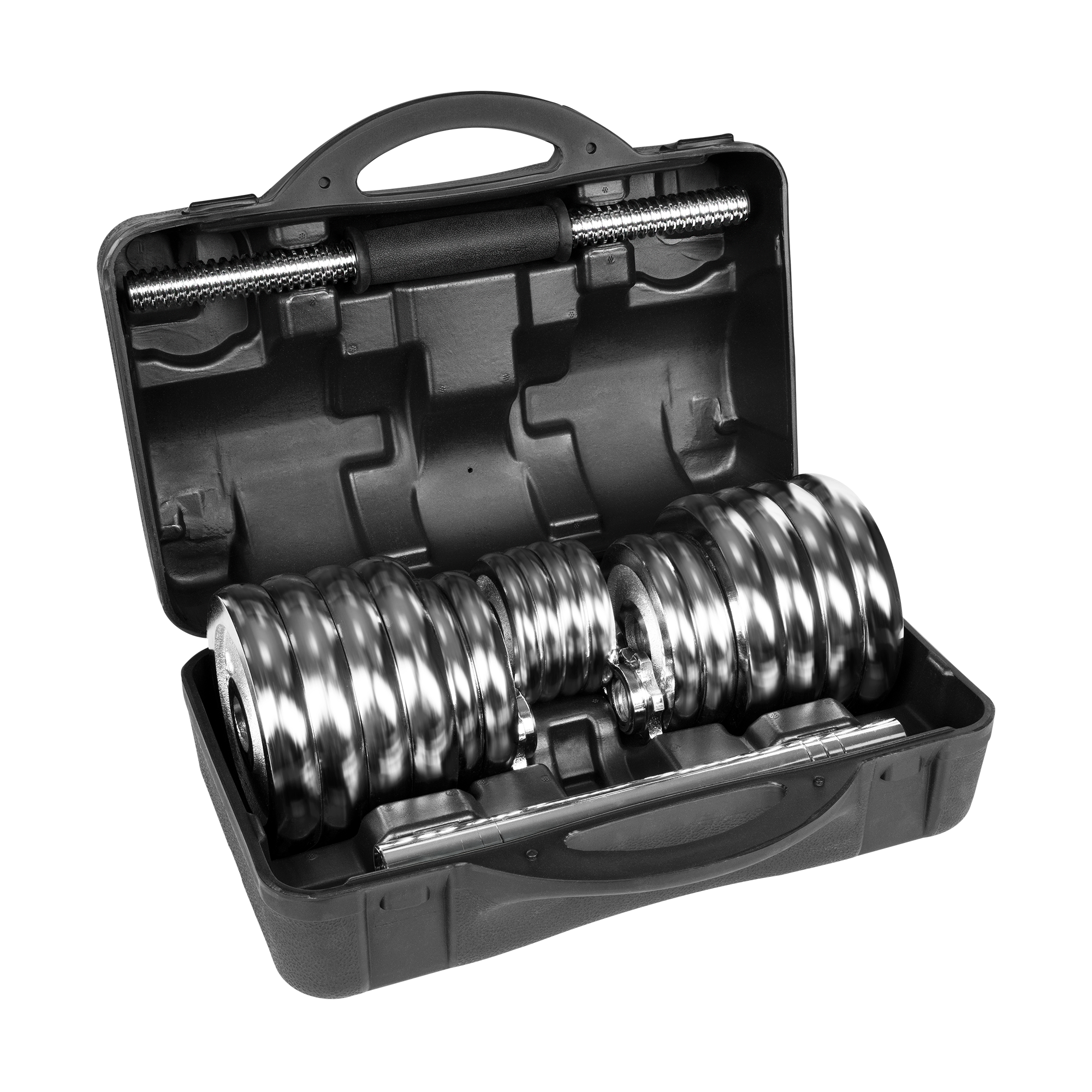 Hantle żeliwne chromowane regulowane w walizce, zestaw 30 kg Rebel Active