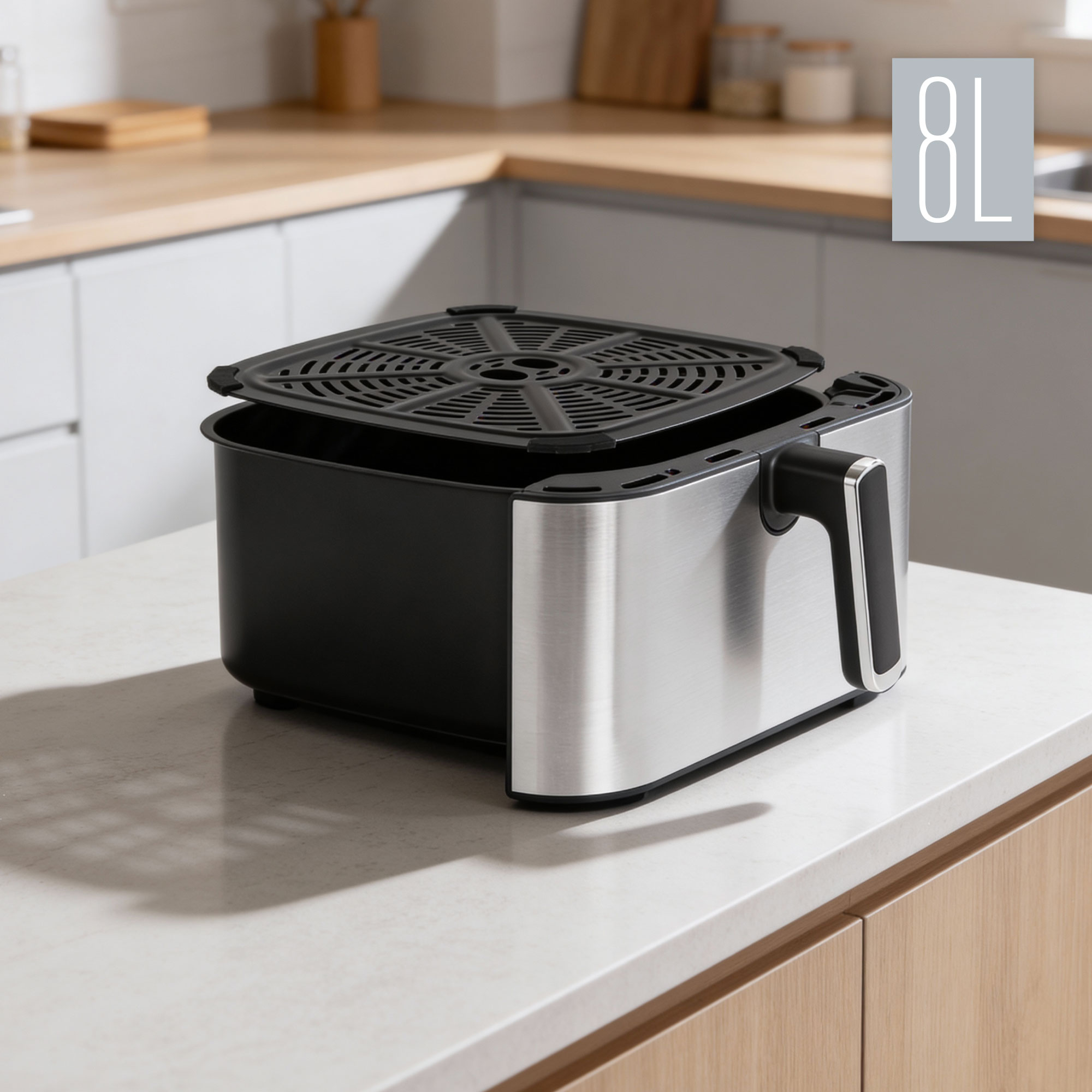 Wybierz jeden z 8 automatycznych programów – stek, udka, owoce morza, ryby, pizza, frytki, ciasta, a nawet suszenie. Dzięki precyzyjnym ustawieniom temperatury i czasu, każde danie przygotujesz perfekcyjnie, bez zgadywania. To idealne rozwiązanie dla zabieganych – wystarczy jedno kliknięcie, by urządzenie zajęło się resztą.