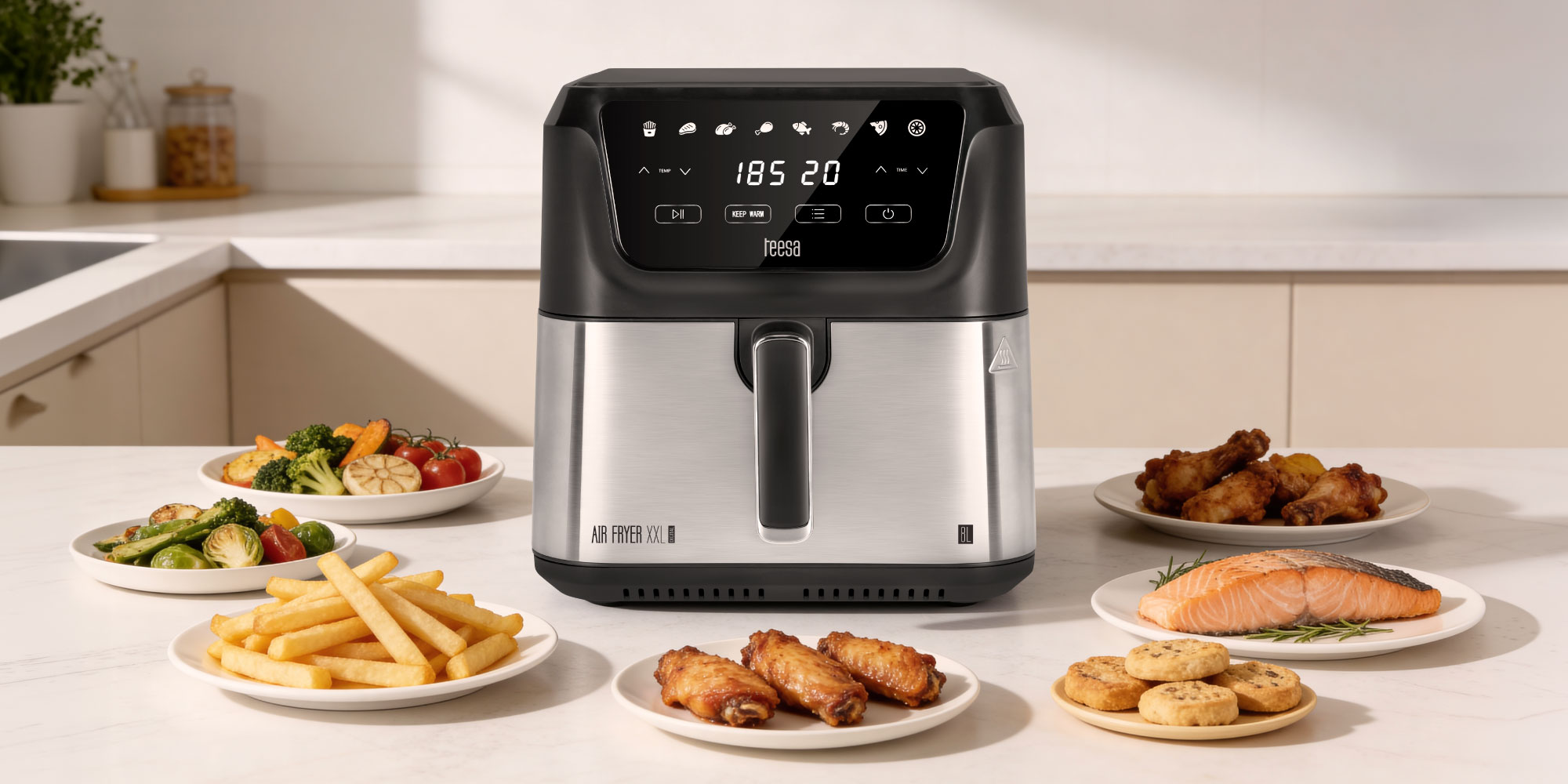 Odkryj zdrowszy sposób gotowania z TEESA DIGITAL AIR FRYER XXL! Dzięki technologii równomiernej cyrkulacji gorącego powietrza przygotujesz chrupiące, złociste potrawy bez dodatku tłuszczu. Od frytek po soczyste steki – ciesz się pełnią smaku i wartości odżywczych, a jednocześnie oszczędzaj czas i energię. Nowoczesny design i intuicyjny panel dotykowy sprawią, że gotowanie stanie się czystą przyjemnością.