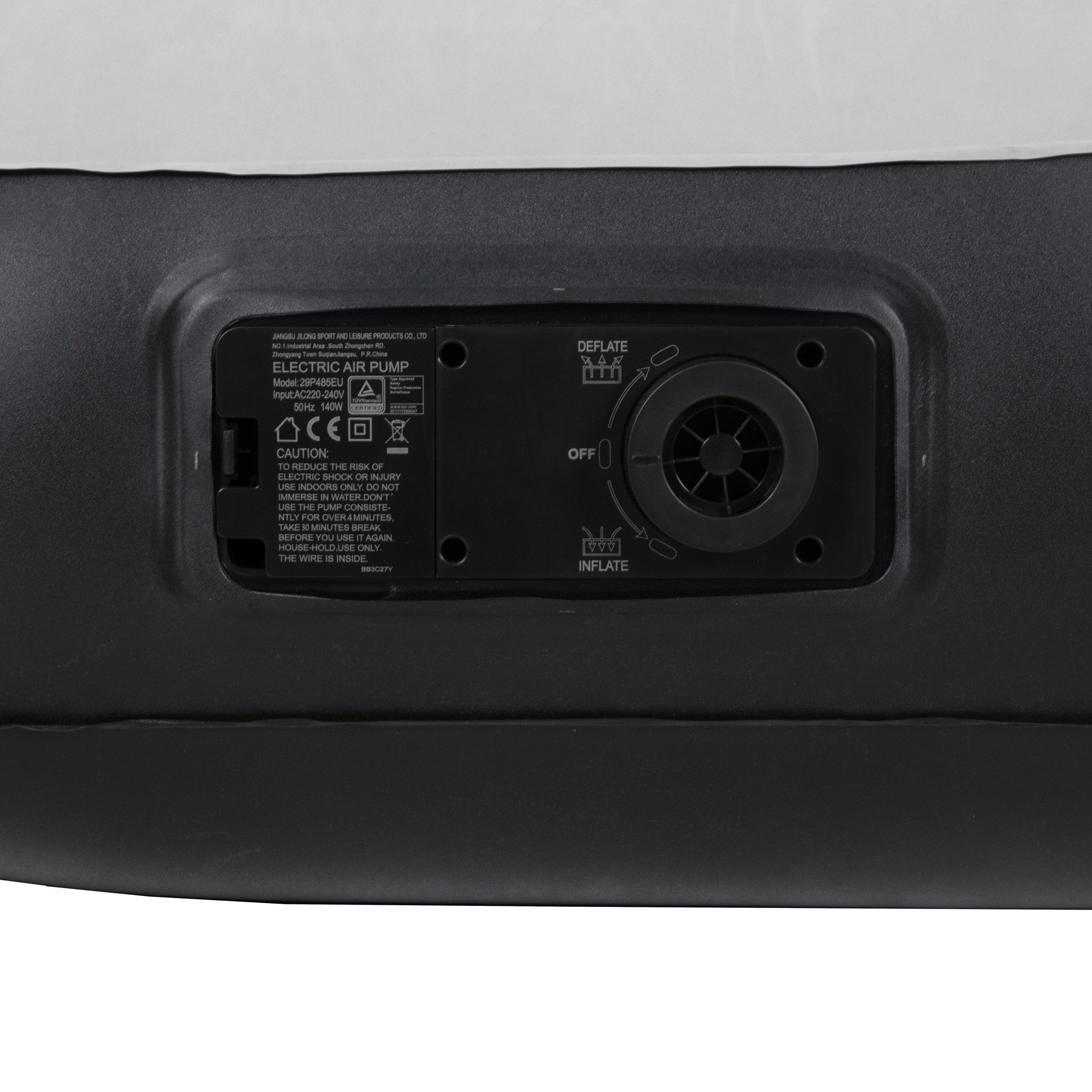 Dzięki wbudowanej pompce elektrycznej (220–240 V, 50 Hz) materac napompujesz w 1 minutę. Maksymalne obciążenie 100 kg oraz solidne PVC gwarantują trwałość, a do zestawu dołączono łatkę naprawczą, aby zawsze być przygotowanym na niespodzianki.