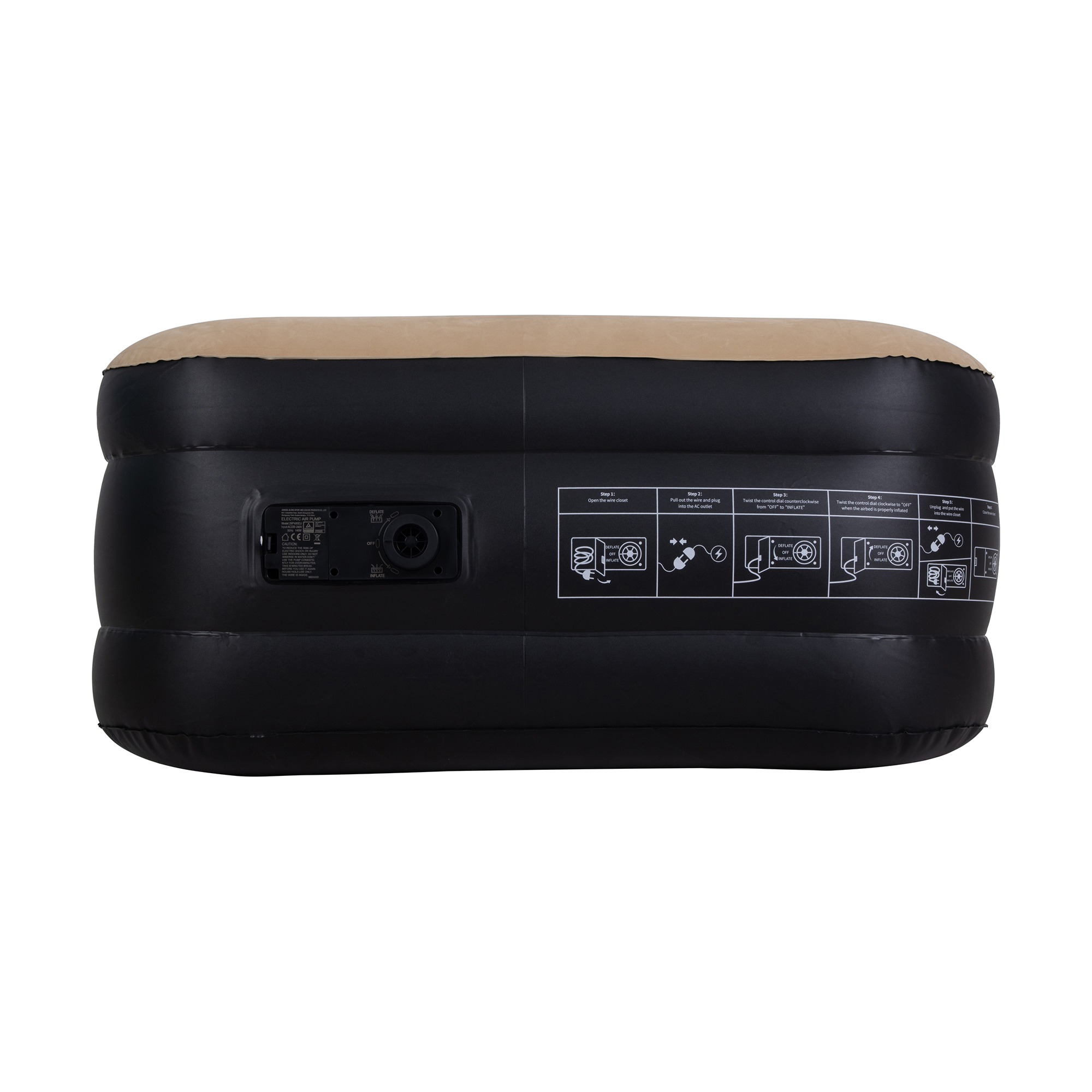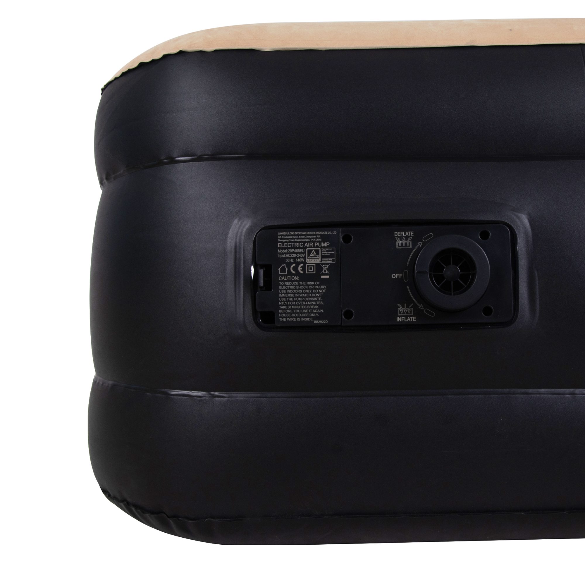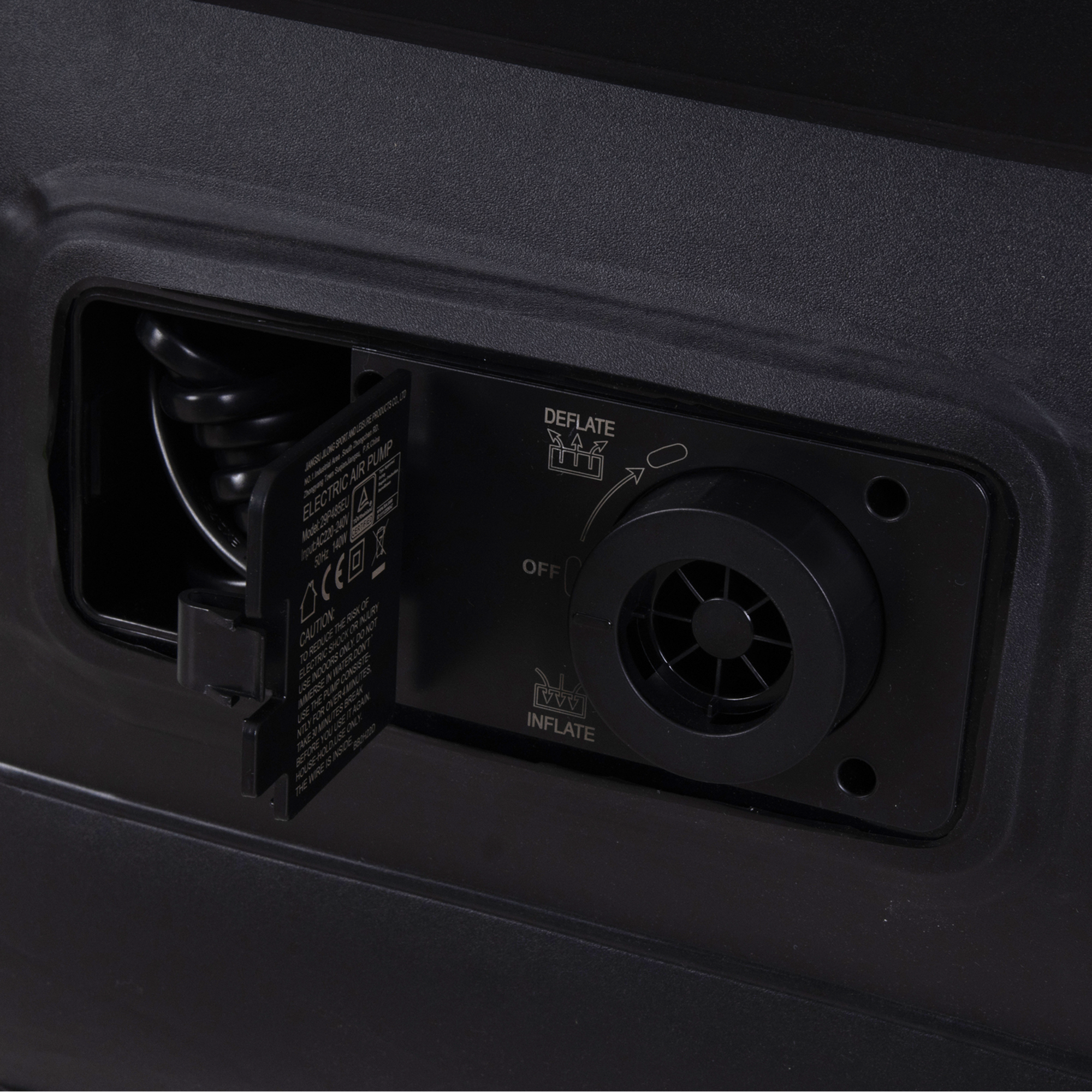 Wbudowana pompka umożliwia szybkie i wygodne napompowanie materaca bez konieczności używania dodatkowych urządzeń. Wystarczy podłączyć, aby w kilka minut materac był gotowy do użytku. Rozwiązanie to ułatwia zarówno rozkładanie, jak i późniejsze opróżnianie materaca.